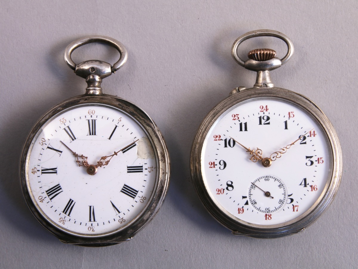Poids brut total. 143,2 g. (la montre à remontoir au pendant en état de marche, manque à l'émail pour la montre à clef).