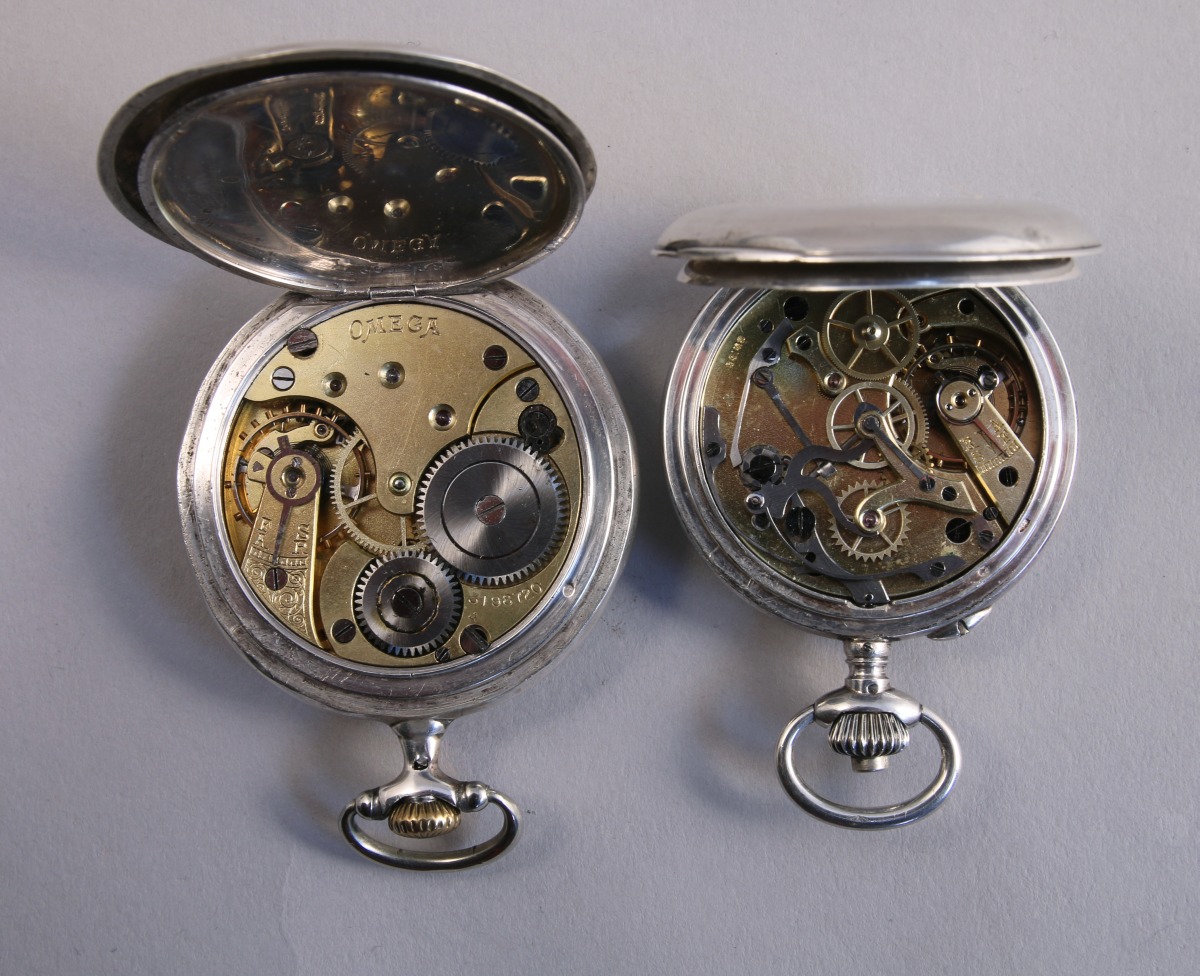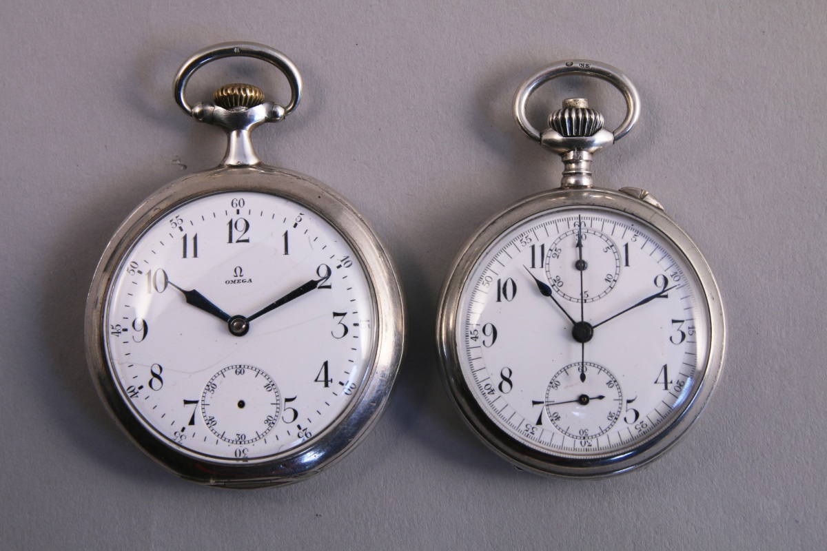 OMEGA. MONTRE de GOUSSET en argent à remontoir au pendant. Le cadran émaillé blanc indique les heures et les minutes en chiffres arabes, la trotteuse à six heures, les aiguilles en acier bleui. Le boitier décoré de feuillages, numéroté 4601238. Le cache poussière porte l'inscrption "OMEGA grand prix Paris 1900". Échappement à ancre, signé. Poinçon d'importation au cygne.