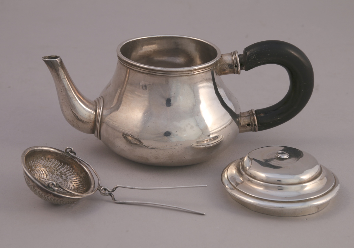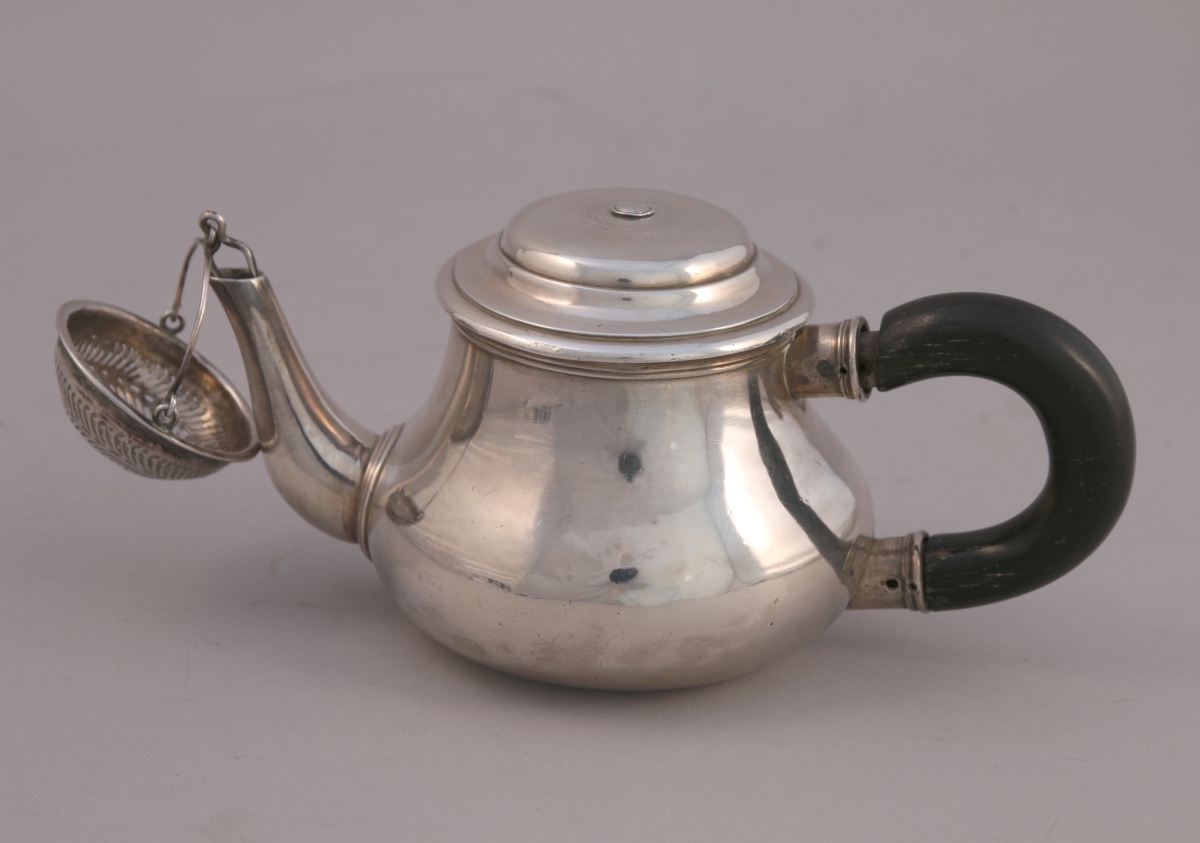 PARIS. THÉIÈRE égoïste en argent uni. Le col et l'attache du bec verseur ornés de filets. Anse en bois noirci rapportée.