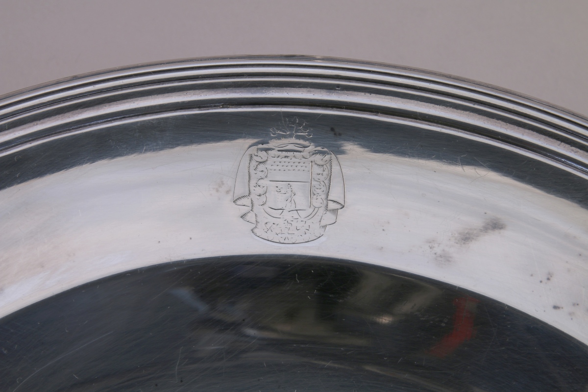 PARIS. BIENNAIS. PLAT creux de forme ronde en argent uni. Aile à filets gravée des armes d'Armand, marquis de Caulaincourt, duc de Vicence.