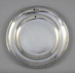 PARIS. ODIOT. PLAT rond en argent. Bordure à filets. Monogramme en relief "I.D" sur l'aile.