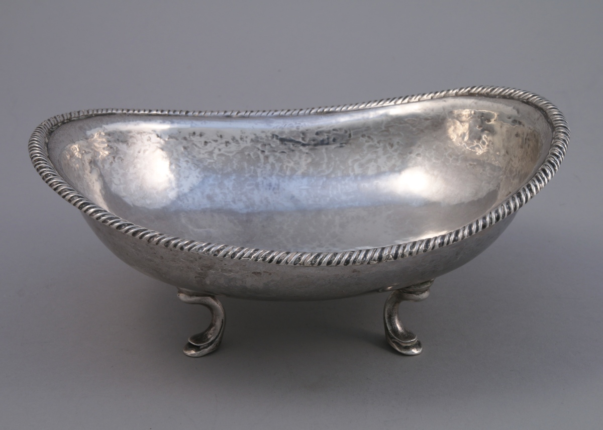 LUNEBOURG ? COUPE de forme oblongue en argent martelé. La bordure ornée d'une frise de câbles. Elle repose sur quatre pieds arqués.