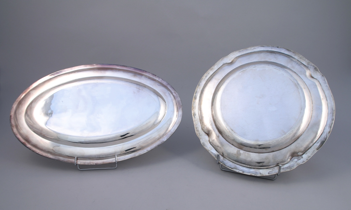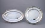 JOINT : PLAT de forme oblongue en métal argenté. Bordure à joncs rubannés.