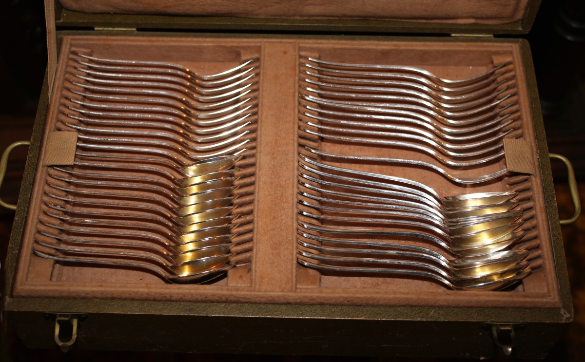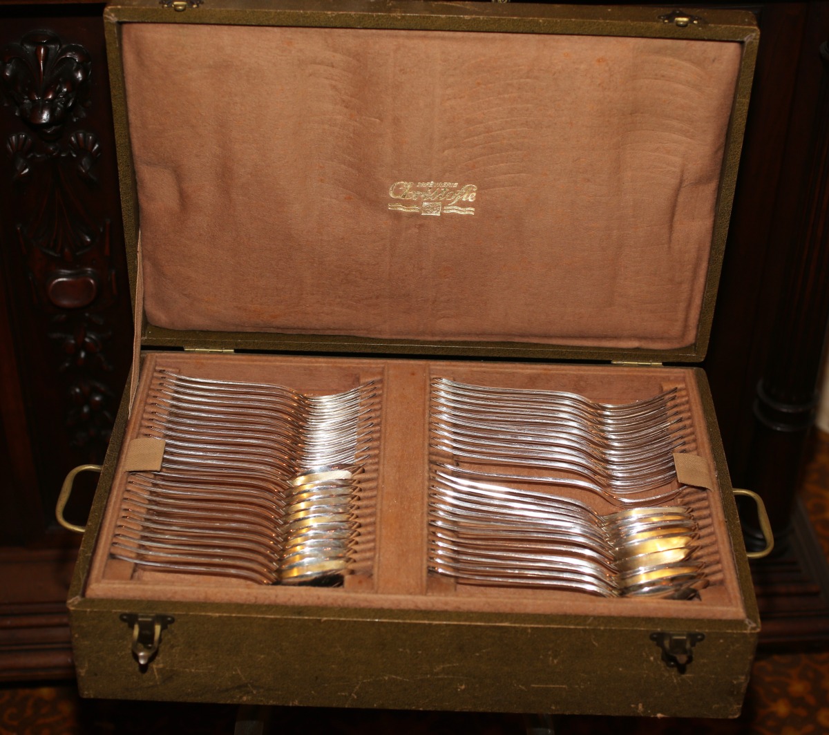 Les couverts dans leur grand coffret CHRISTOFLE.