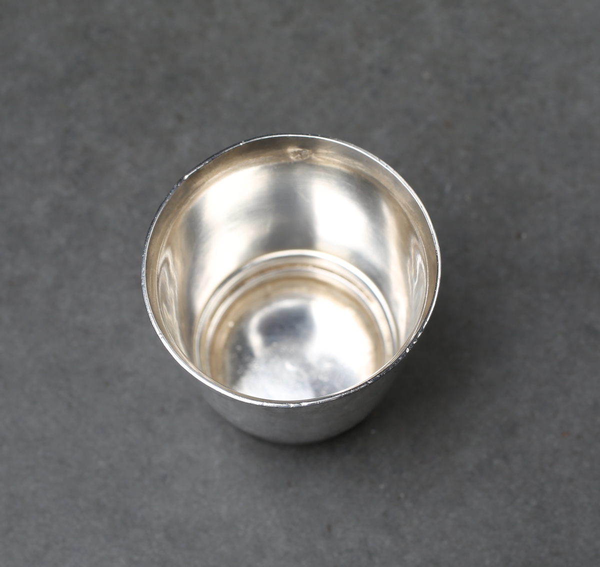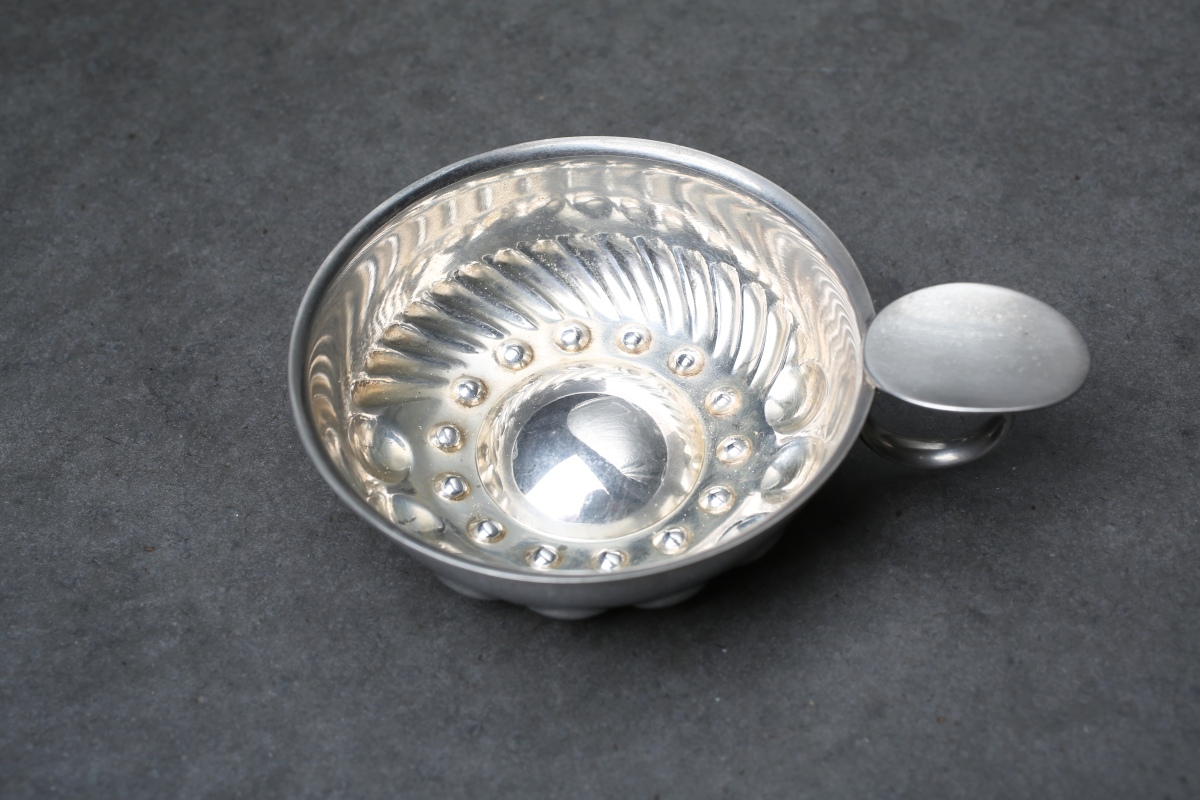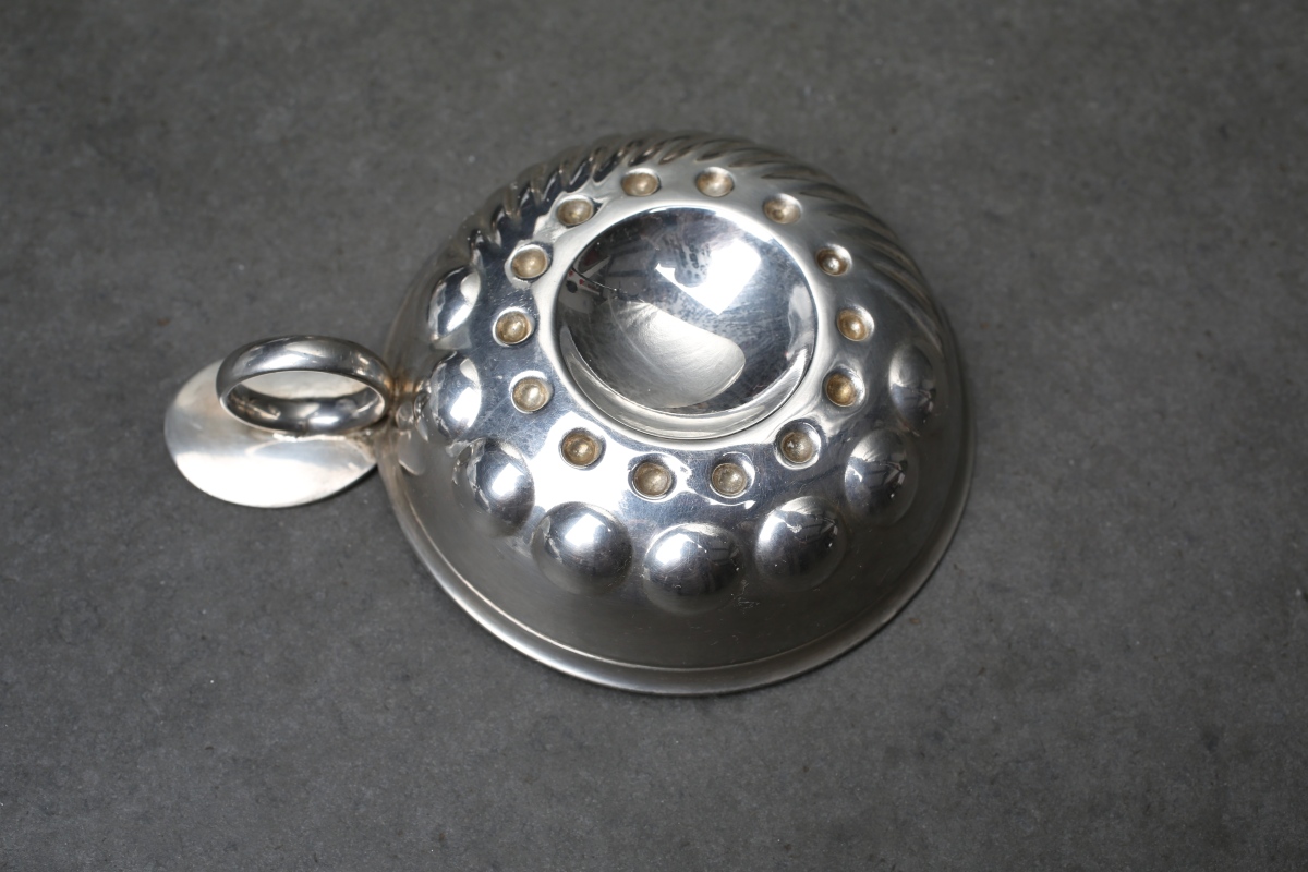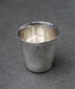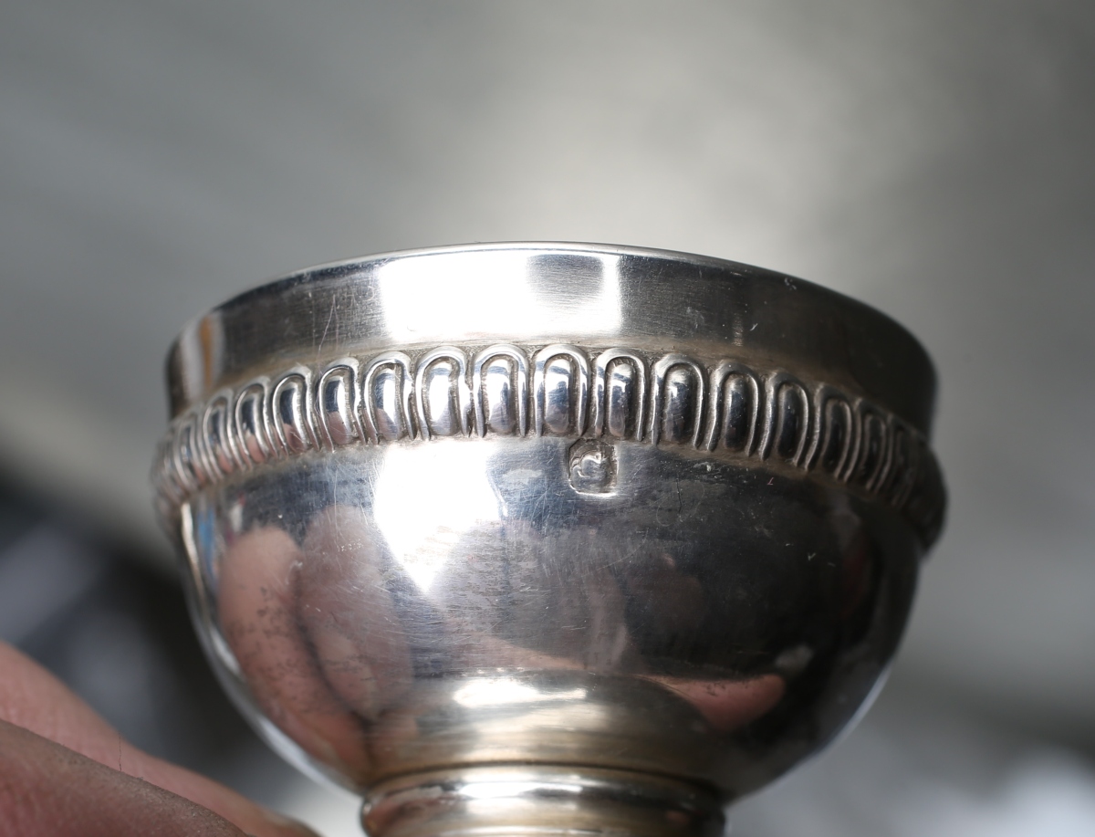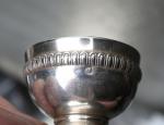 Réunion de PETITE ARGENTERIE en argent massif comprenant un GOBELET à LIQUEUR, un COQUETIER et un TASTE VIN.
