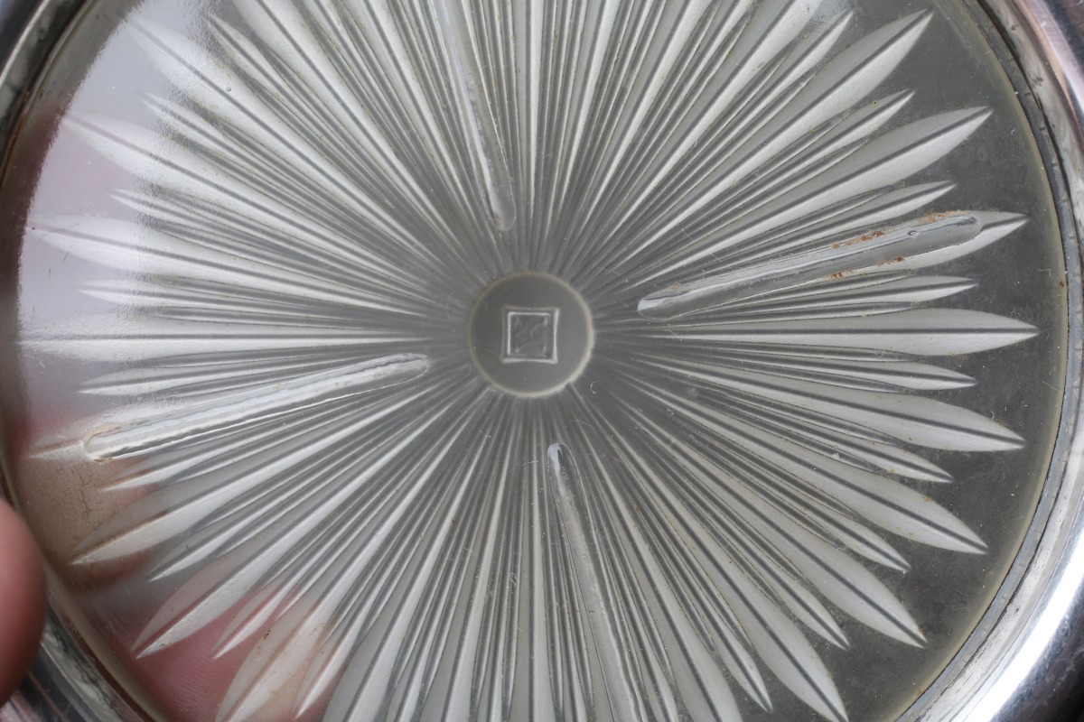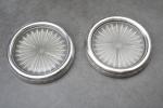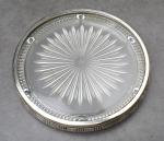 JOINT : 1 DESSOUS de PLAT et 2 DESSOUS de CARAFE en métal argenté et verre rayonnant.