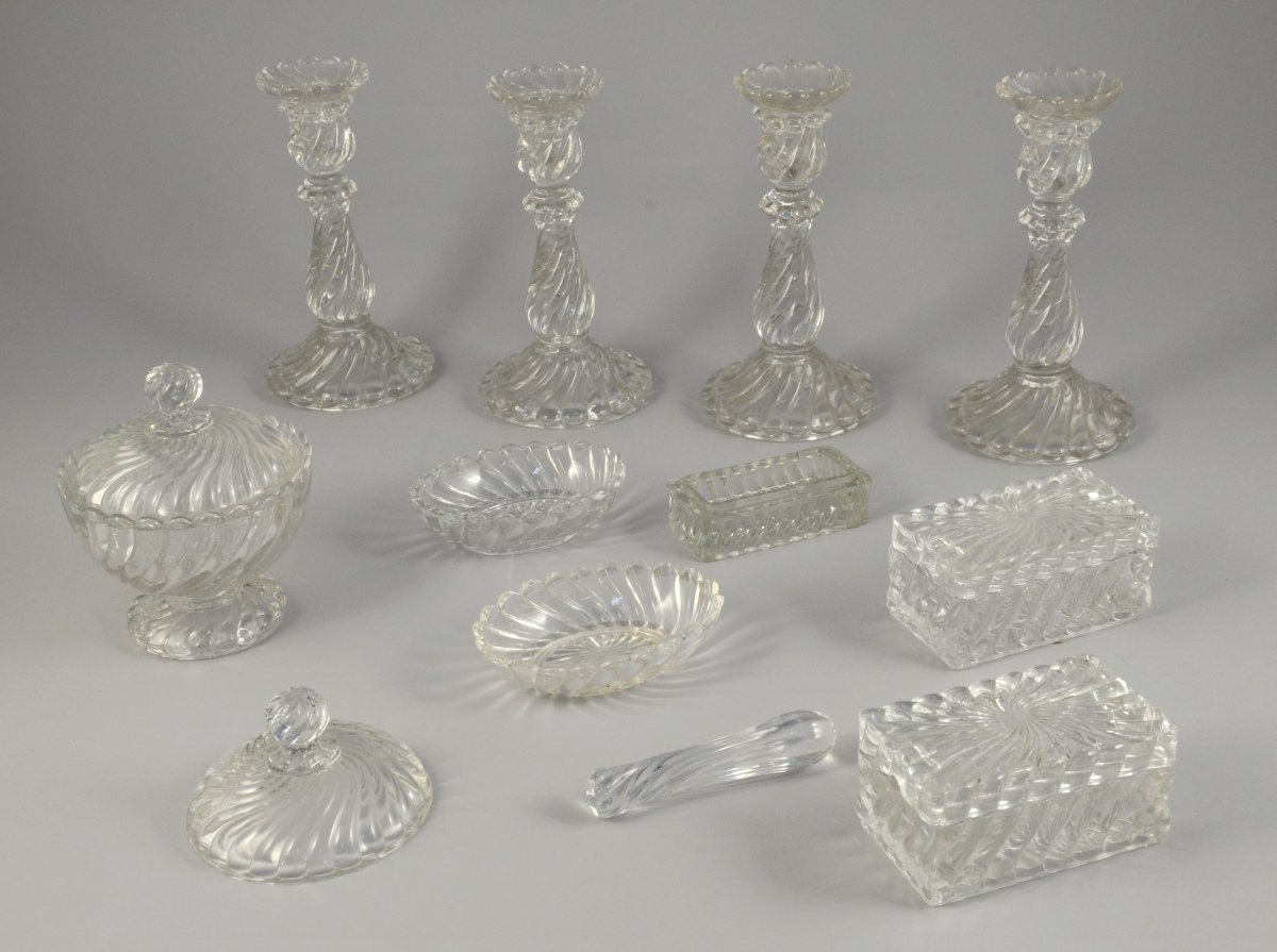 BACCARAT. 12 pièces en cristal taillé, à décor de godrons torses, comprenant :
