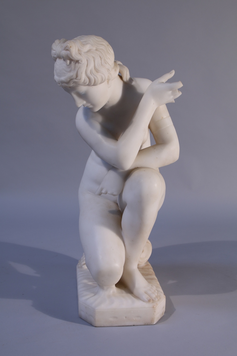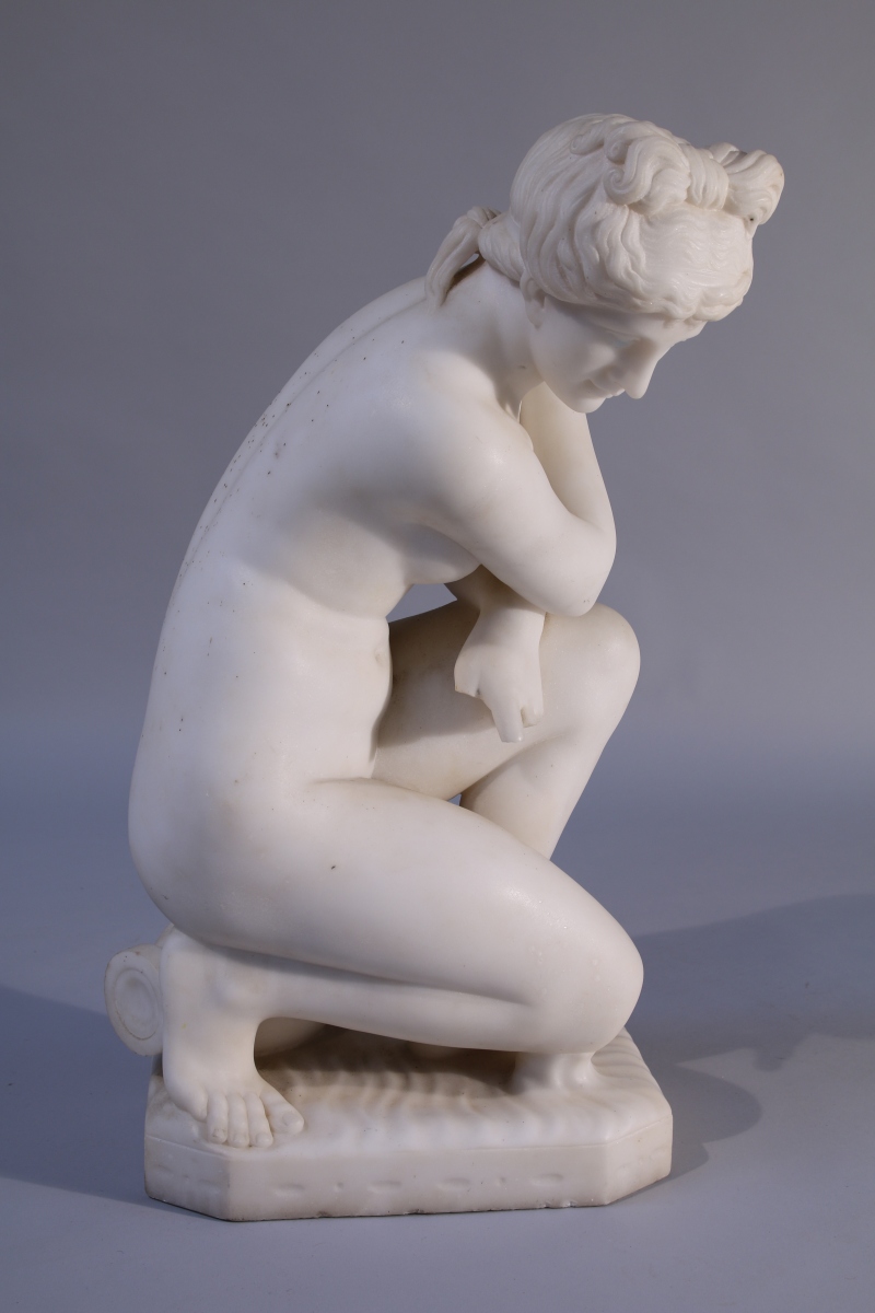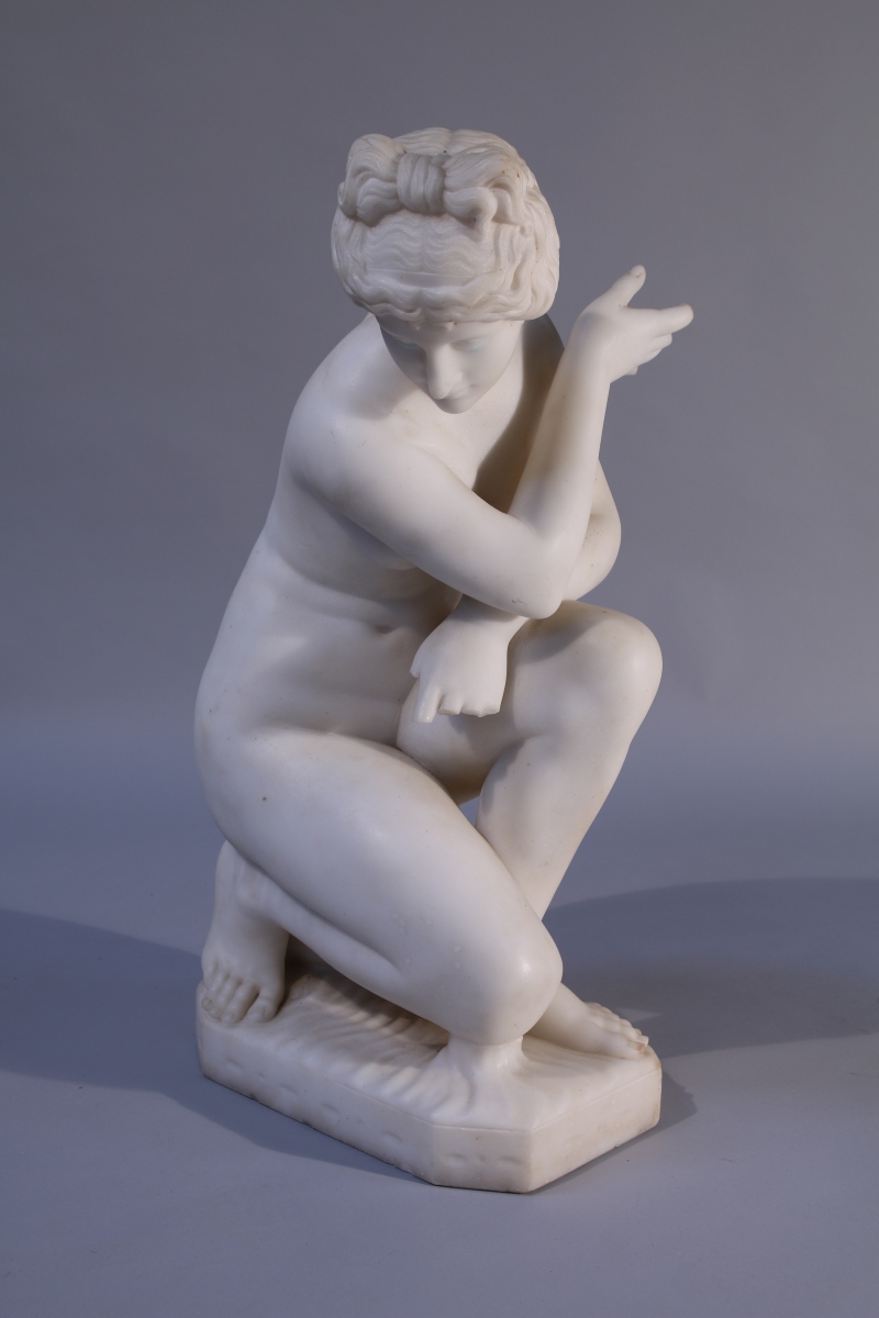 VÉNUS de LÉLY d''après l'école ANTIQUE. Vénus sortant du bain dite "Vénus de Lély", en marbre blanc d'après l'original du IIe siècle conservé au British Museum.