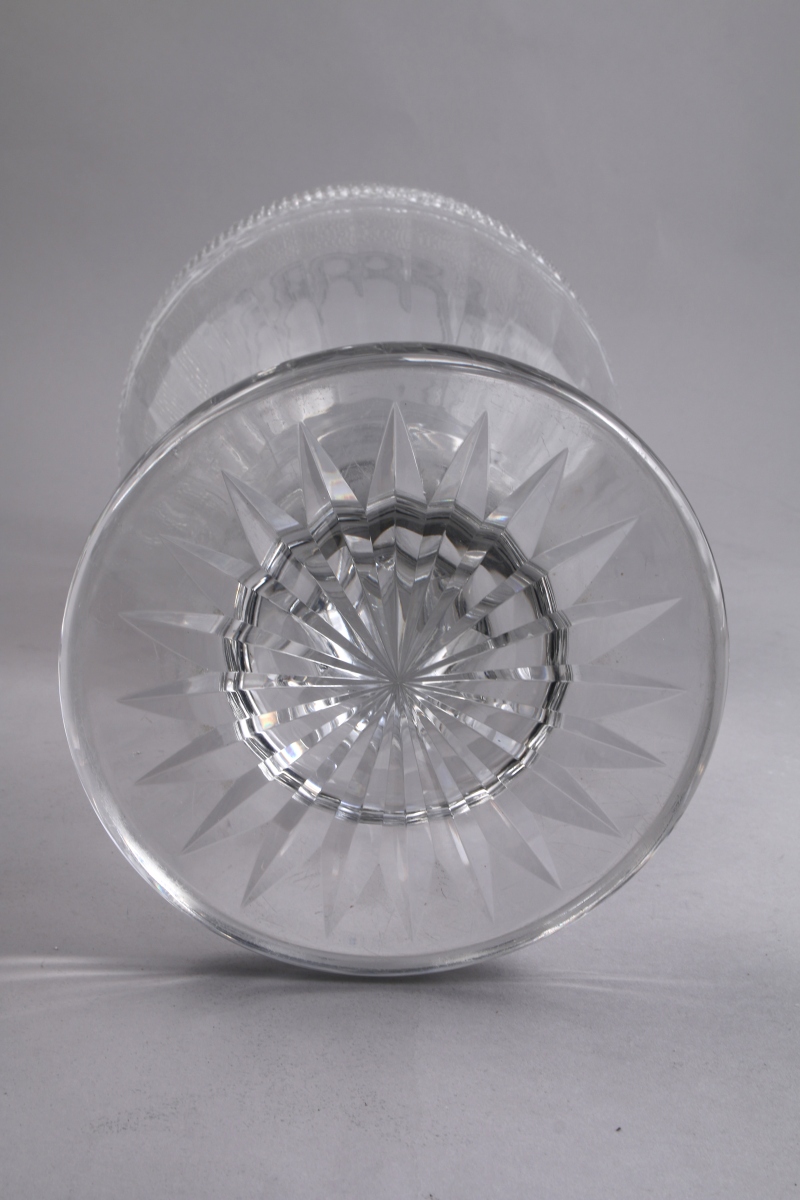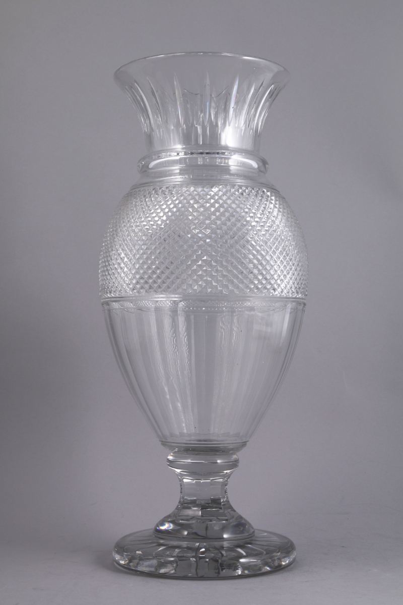 MUSÉE DES CRISTALLERIES DE BACCARAT. VASE balustre "Eurydice" en cristal taillé de pointes de diamants. Tampon sous le piédouche : "Musée des Cristalleries / de Baccarat / 1821-1840 / Reproduction".