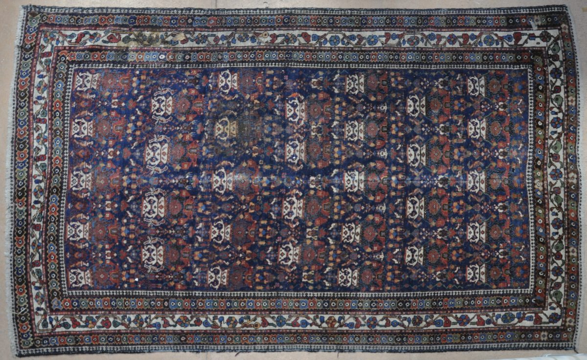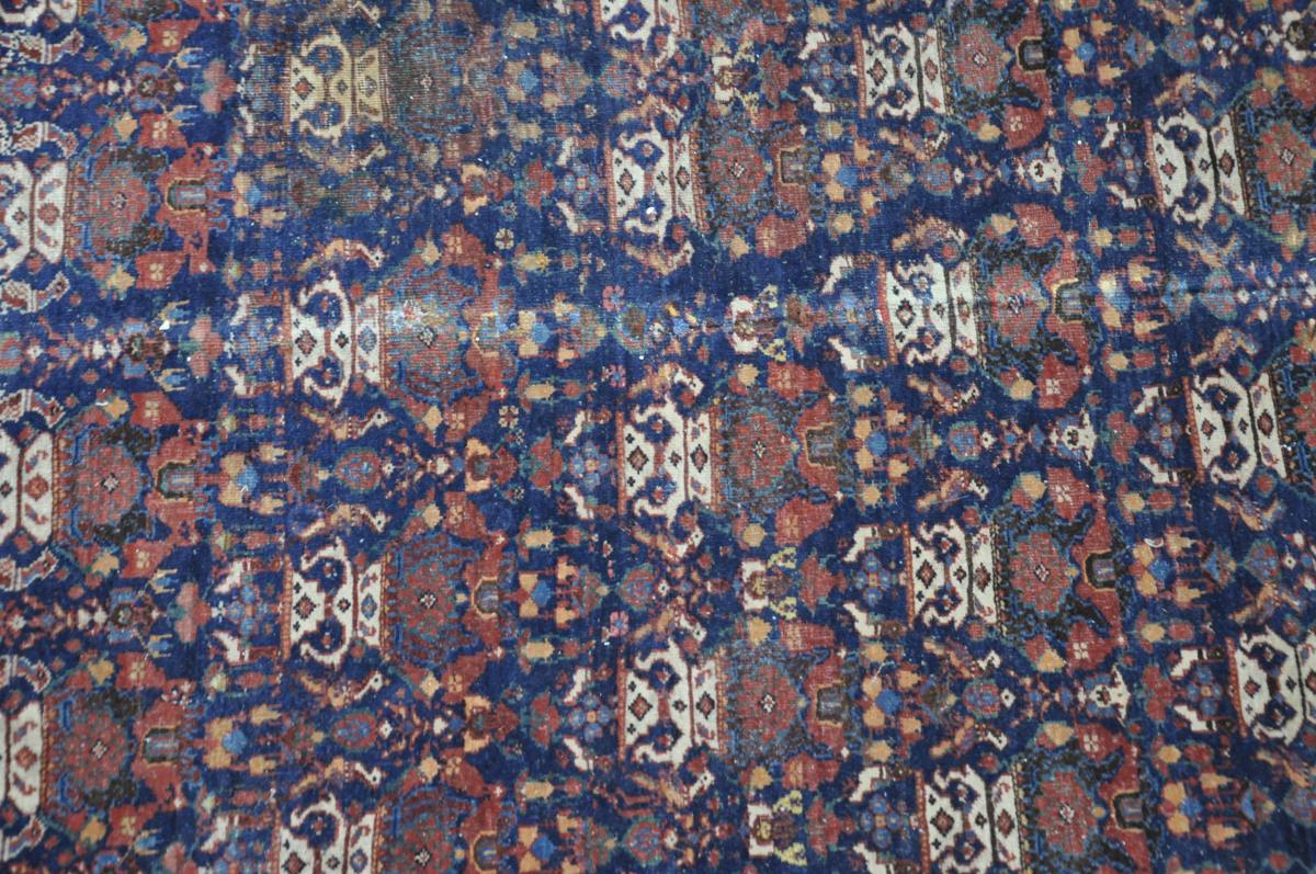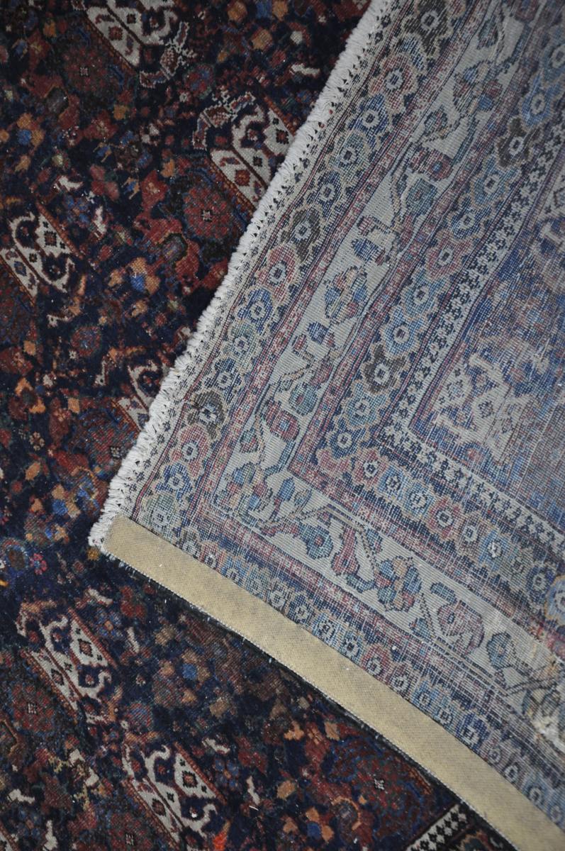 IRAN. TAPIS D'ORIENT (Ispahan ?) en laine à décor floral sur fond bleu nuit.