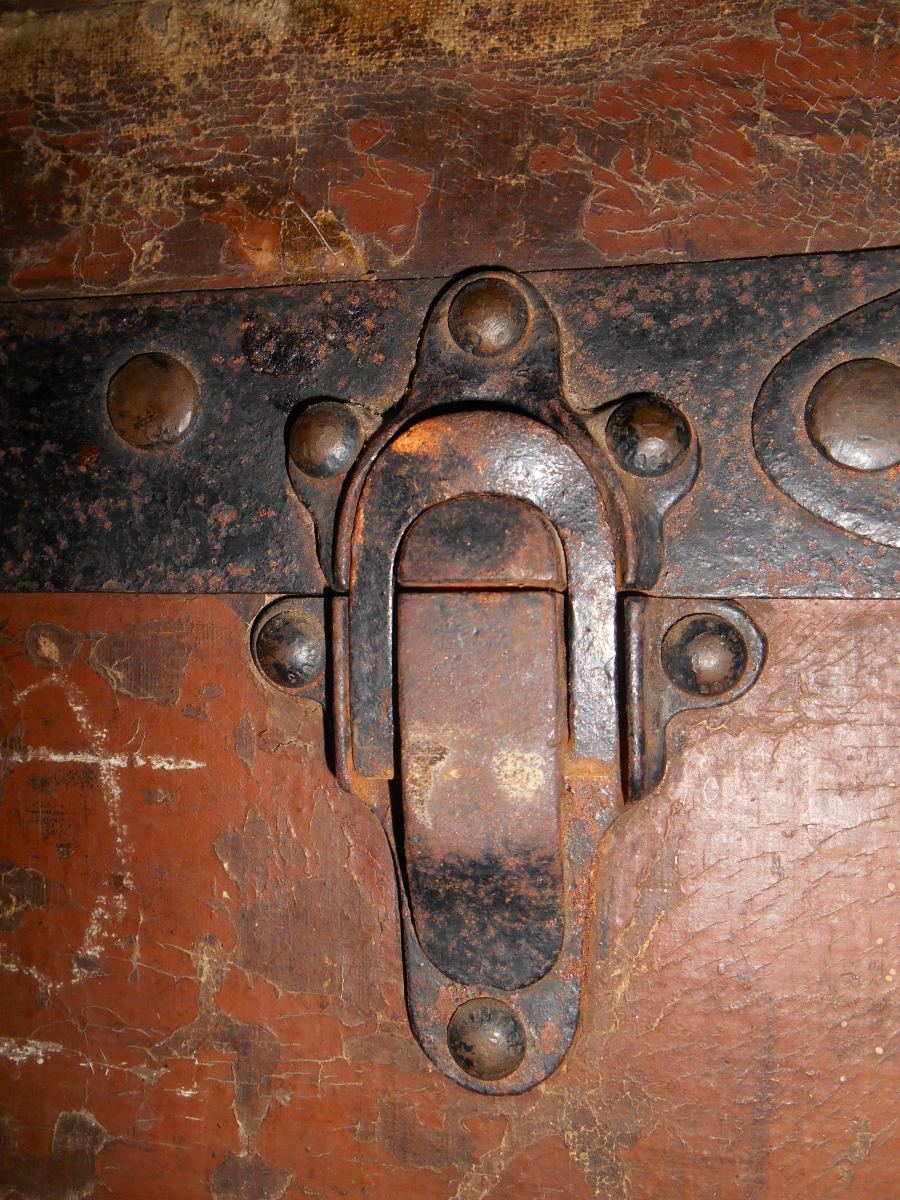 VUITTON, MALLE de voyage. Certains clous bombés, siglés.