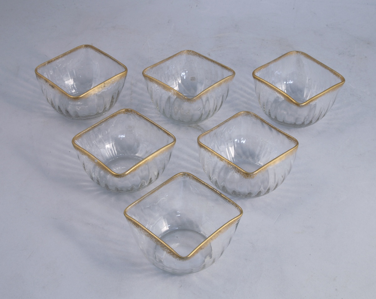 SIX COUPES de forme carrée à côtes torses légèrement godronnées...