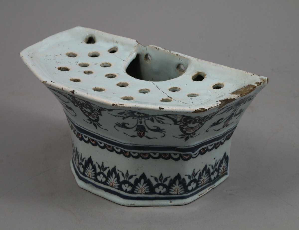 ROUEN. BOUQUETIÈRE d'applique à pans coupés en faïence de petit...