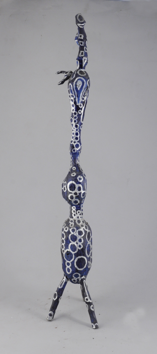 Sculpture en bois peint en noir, bleu, argent, Circa 1958, repris dans les années 1990.