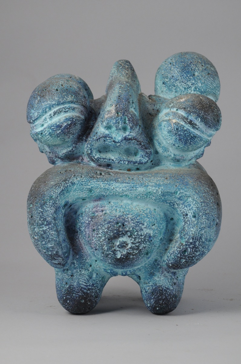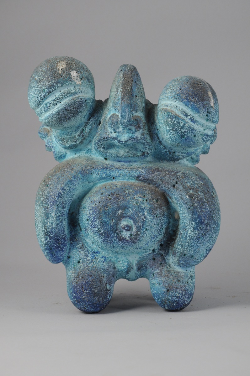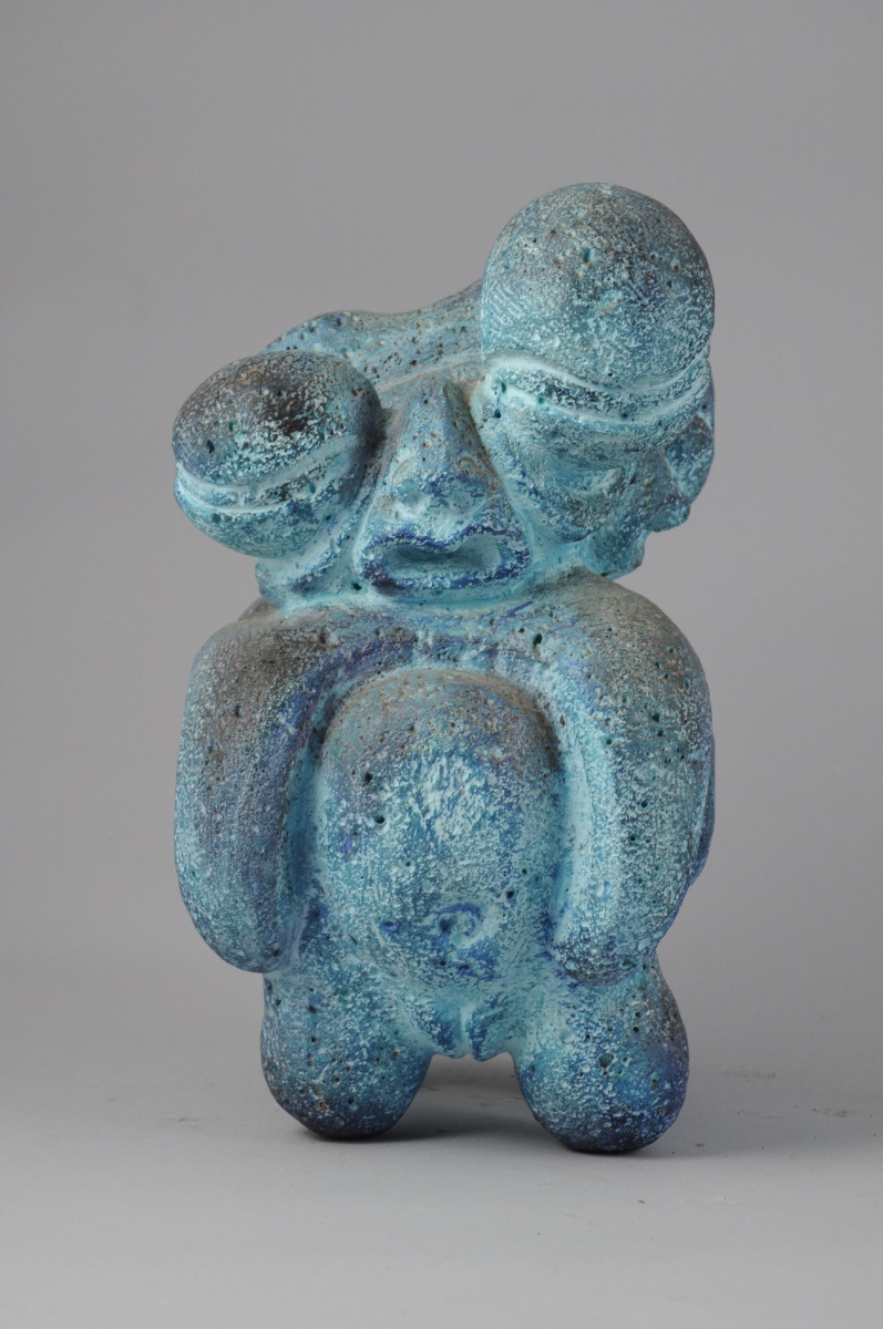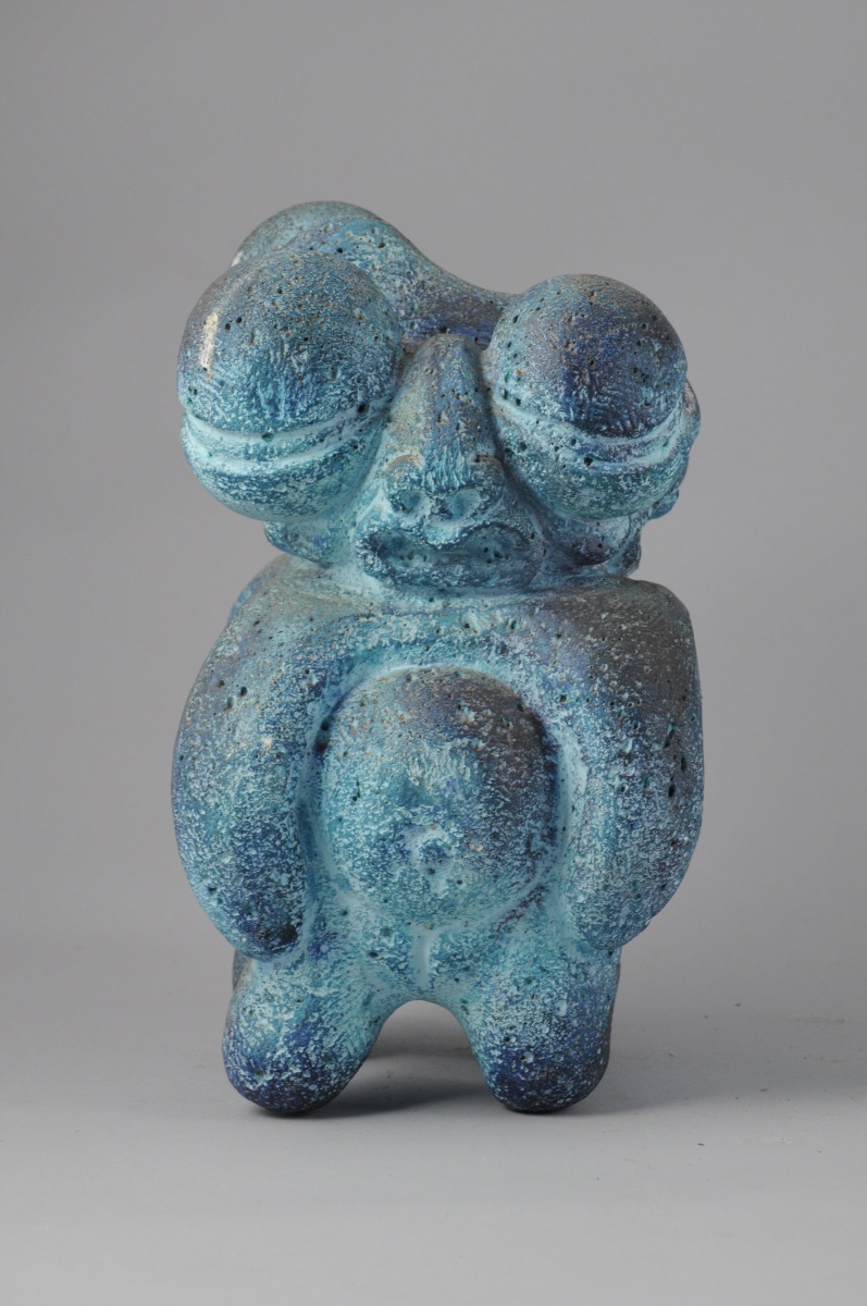 Sculpture en siporex à patine bleue.