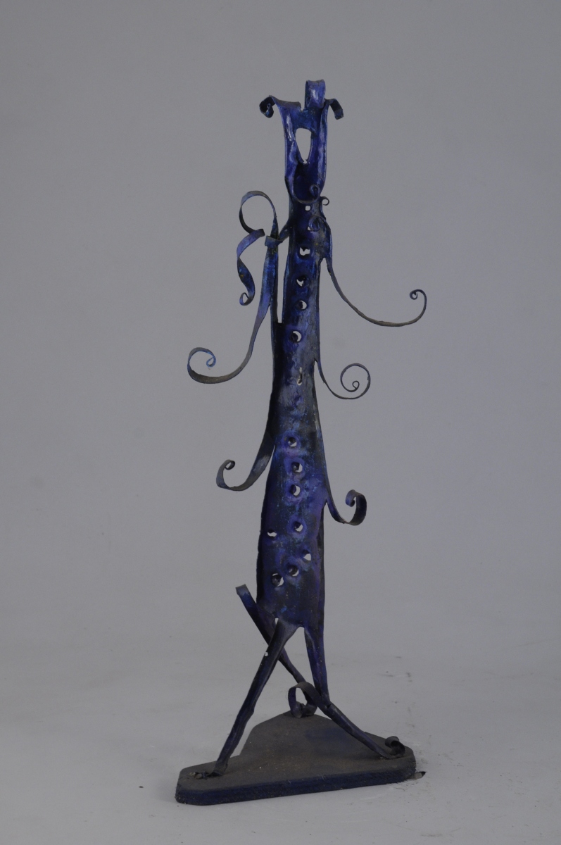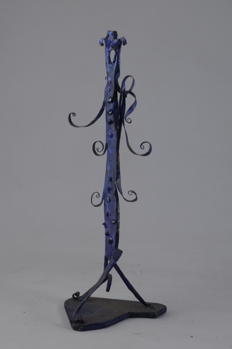 Sculpture en tôle peinte en bleu sur socle de de bois, signé sous le socle et daté 1995