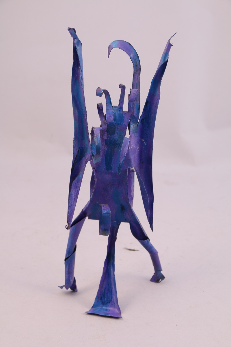 Sculpture en tôle peinte bleue.