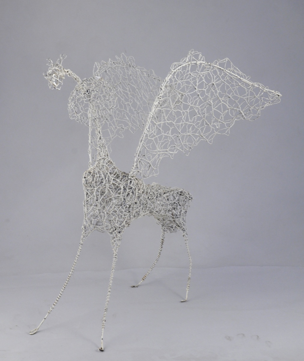 Sculpture en grillage peint en blanc.