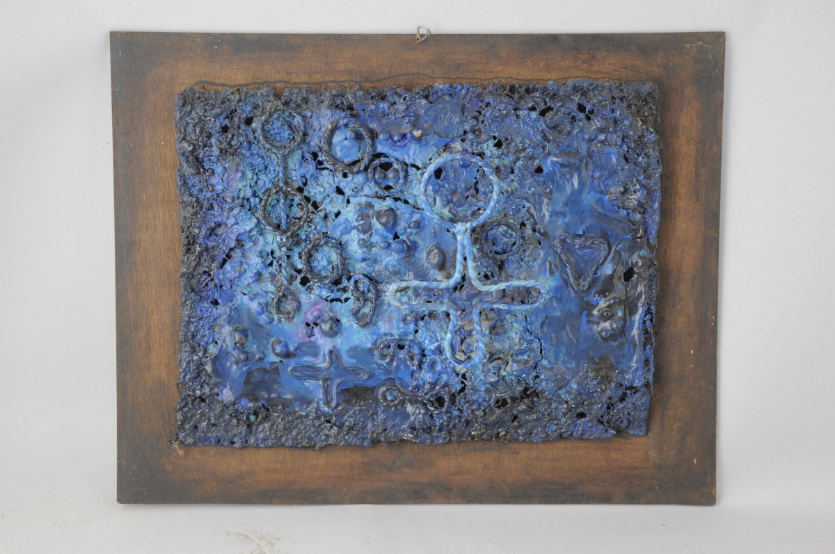 Bas relief métalique peint, assemblé sur contreplaqué, signé et titré au dos.