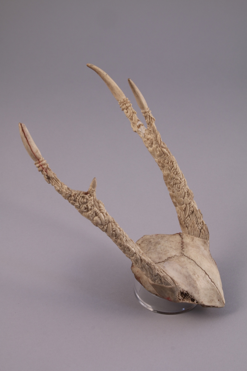 HISTOIRE NATURELLE. MASSACRE de cervidé, les bois sculptés de divinités...