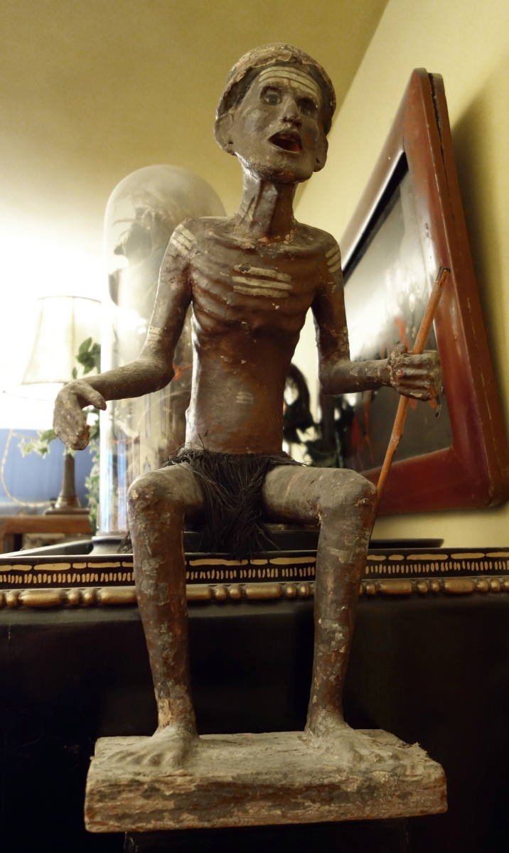Il y a 2000 ans dans les iles Célèbes du Pacifique, les Toradjas creusaient, dans la falaise surplombant leurs villages, des excavations destinées aux morts et dans les quelles ils plaçaient des mannequins de bois appuyés à une rambarde. Ces mannequins d1,22 m dits Tau-Tau symbolisaient les ancêtres défunts de la communauté Sulawesi regardant vivre leur village. La conscience des ancêtres regardait ainsi en permanence la vie de leurs enfants et petits-enfants.