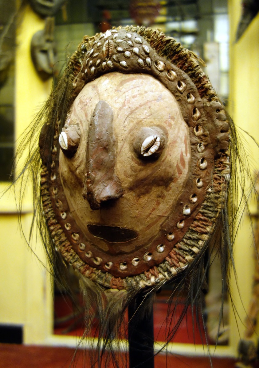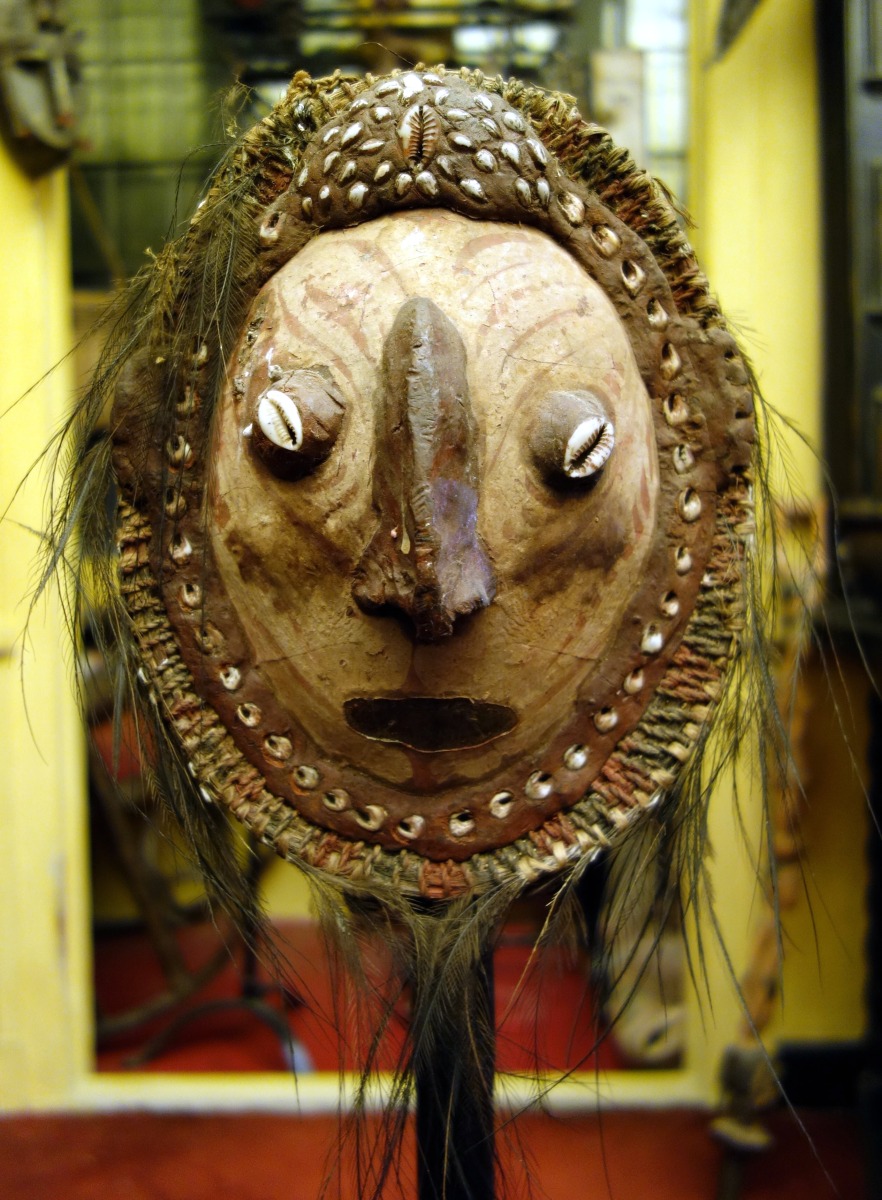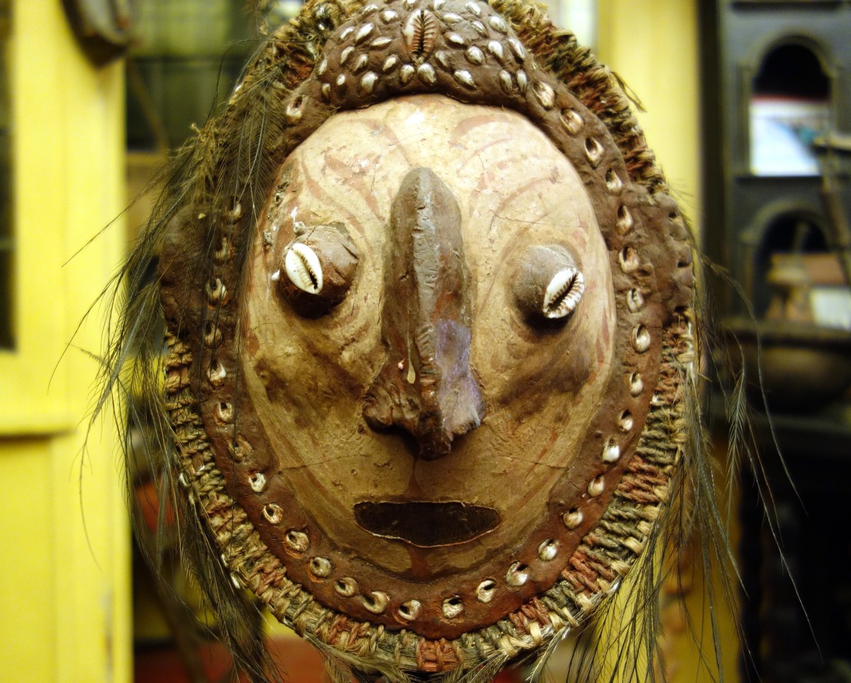 PACIFIQUE - XXe. MASQUE TAMBUNAN en matière animale, cauris, fibres, vanneries.