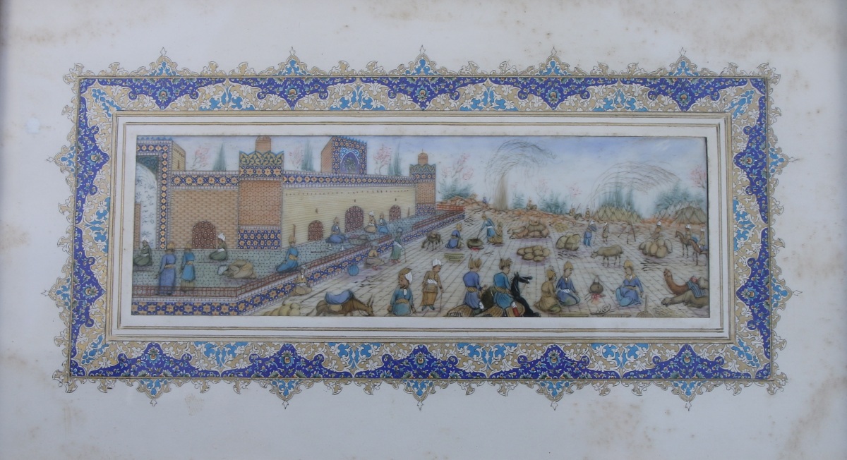 IRAN - ISPAHAN - XXe. QUATRE MINIATURES sur micacé représentant :