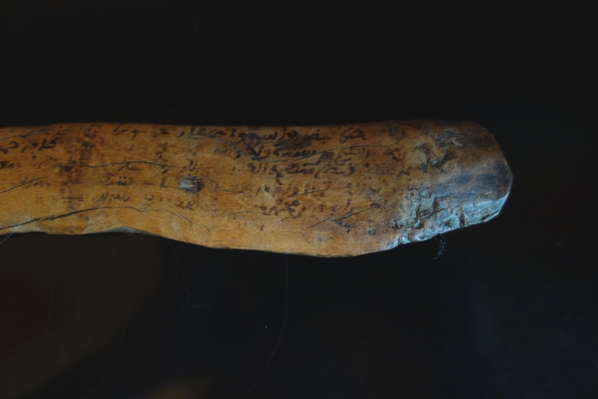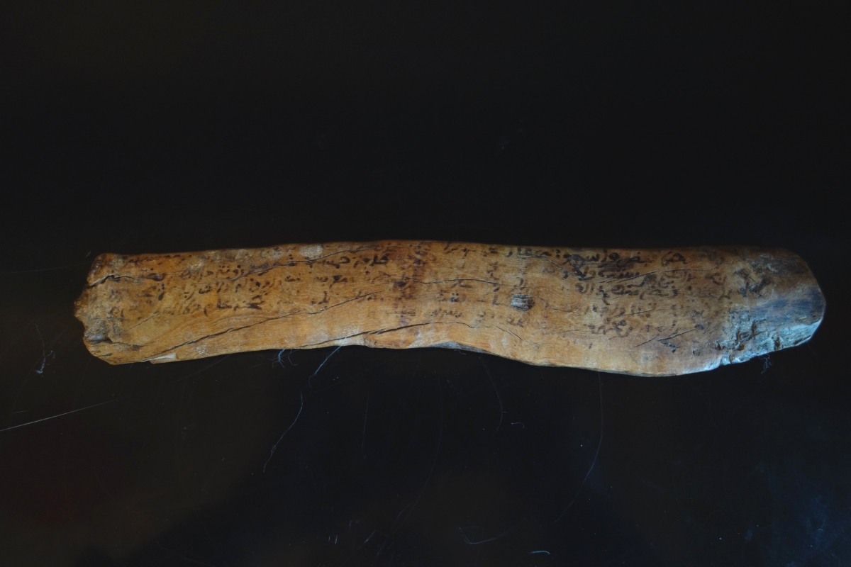 MAGHREB - XVIIIe ou plus ancien. BOIS FLOTTÉ à inscription talismanique. Inscrit en arabe à l'encre brune en maghribi.
