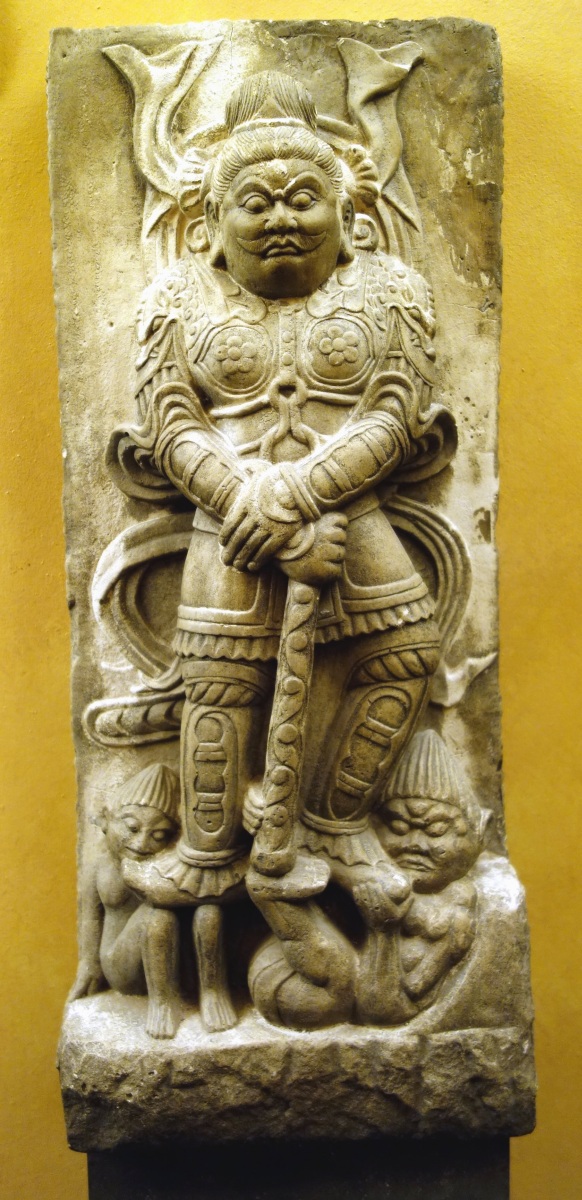 INDONÉSIE. GUERRIER à la MASSUE, bas-relief en plâtre.