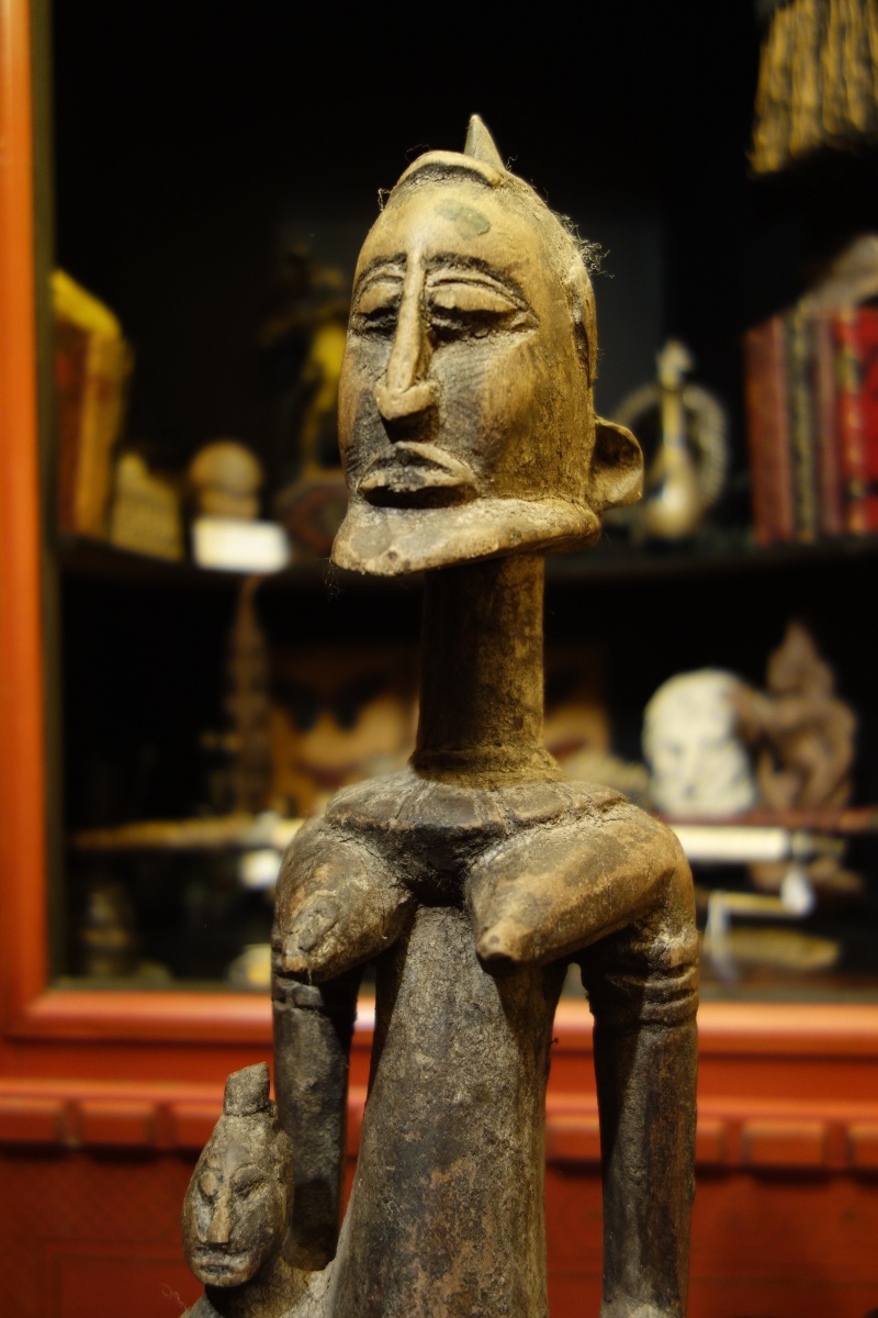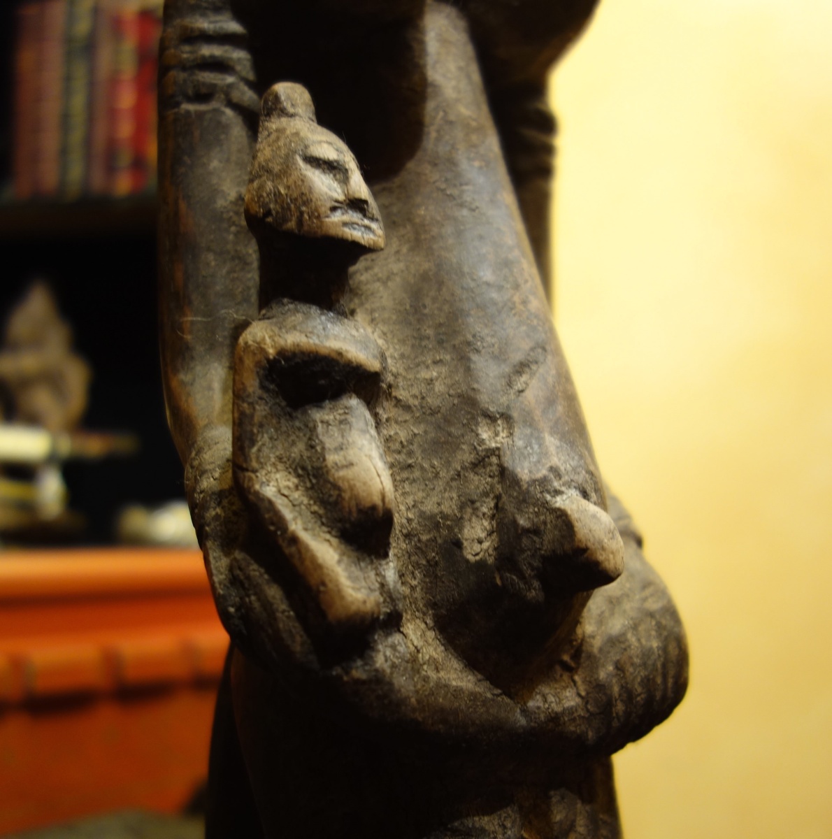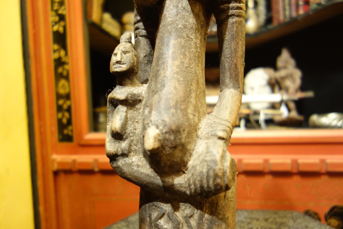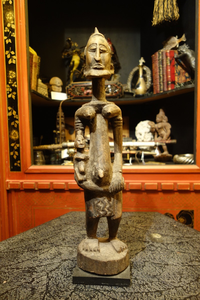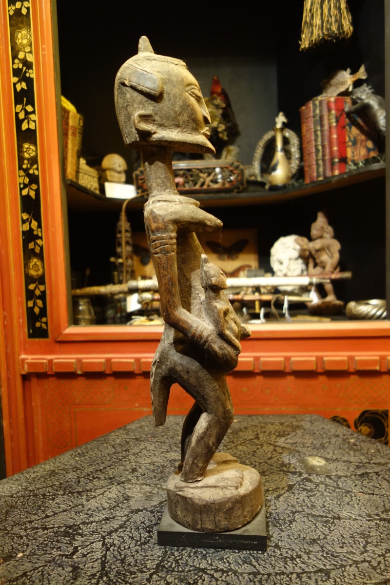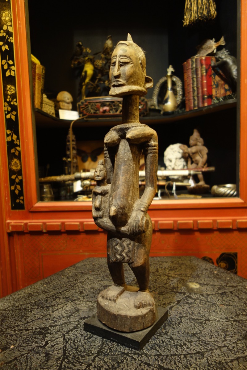 AFRIQUE. MATERNITÉ en bois sculpté, le nombril saillant.