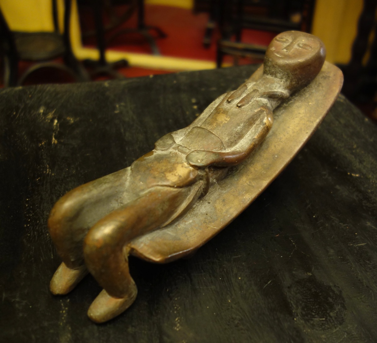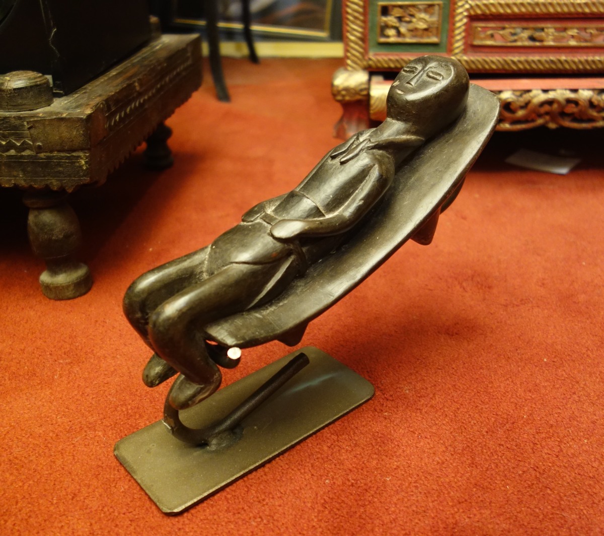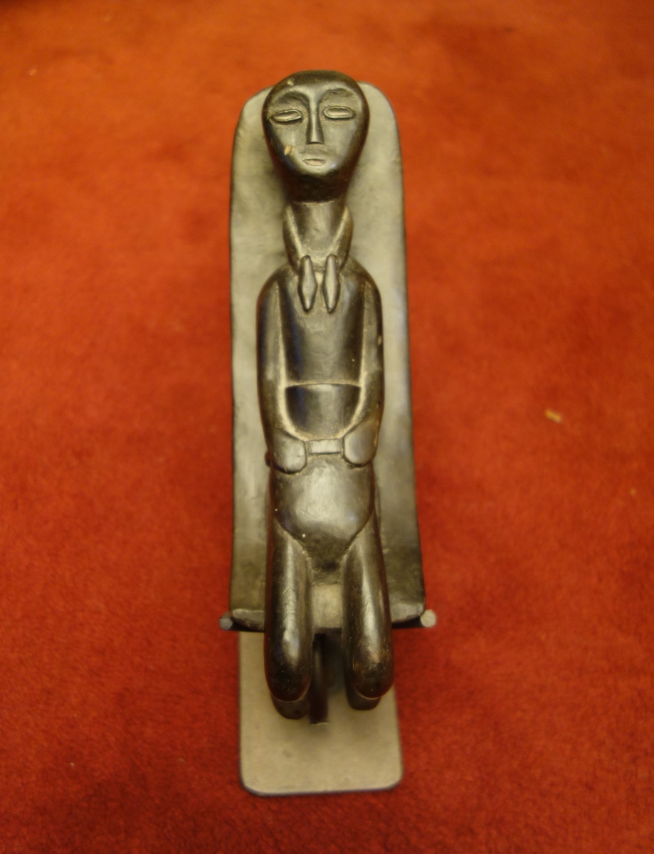 AFRIQUE. APPUI-TÊTE en bois noirci sculpté, figurant un enfant couché.
