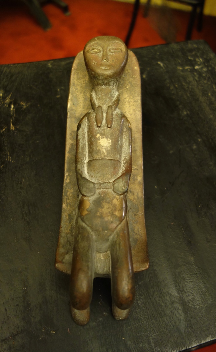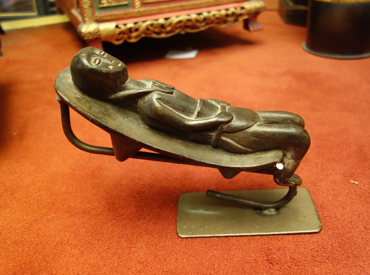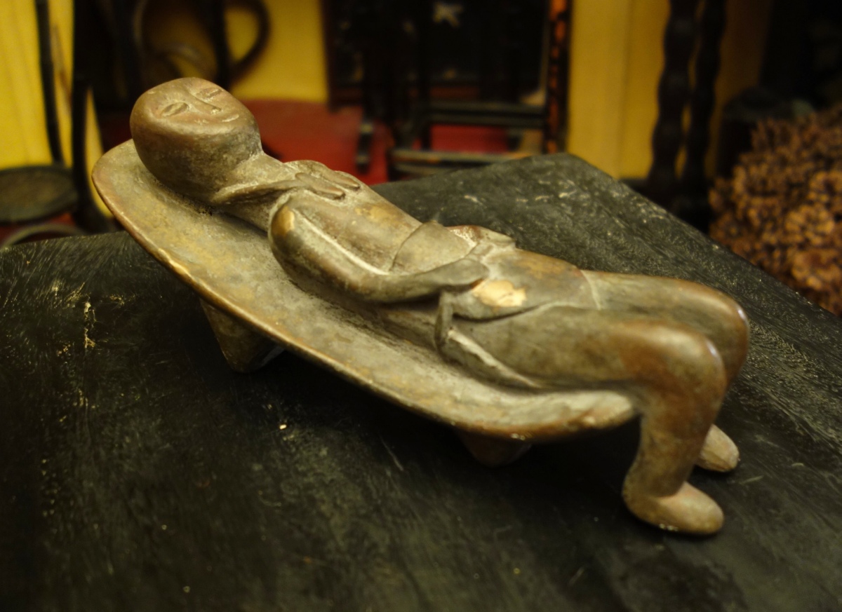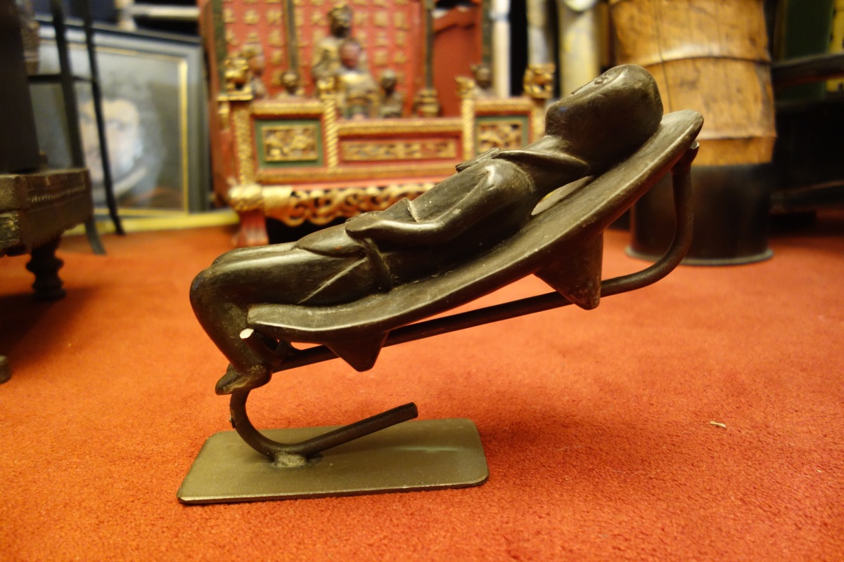 AFRIQUE. APPUI-TÊTE en bois noirci sculpté, figurant un enfant couché.