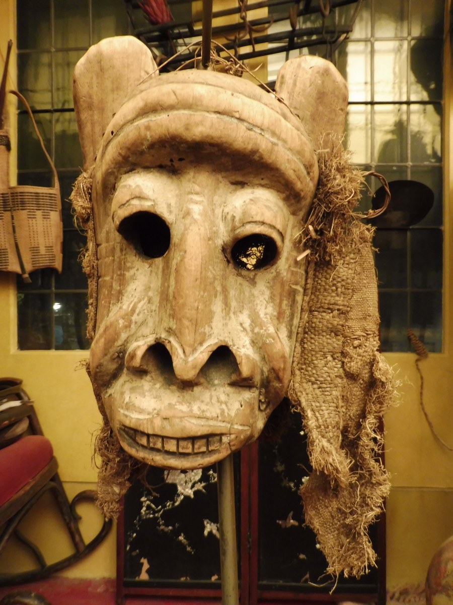 AFRIQUE. MASQUE à oreilles en bois sculpté et fibre.