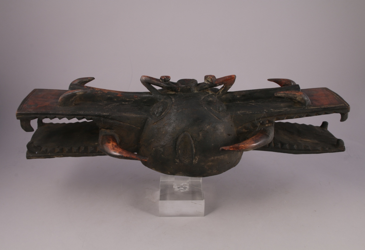 AFRIQUE. CIMIER, en bois sculpté figurant deux animaux fantastiques opposés.Haut....