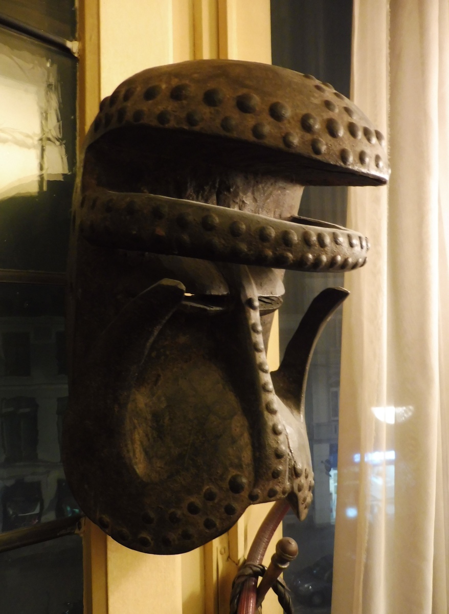 NIGÉRIA ? MASQUE représentant un phacochère en bois et fer.