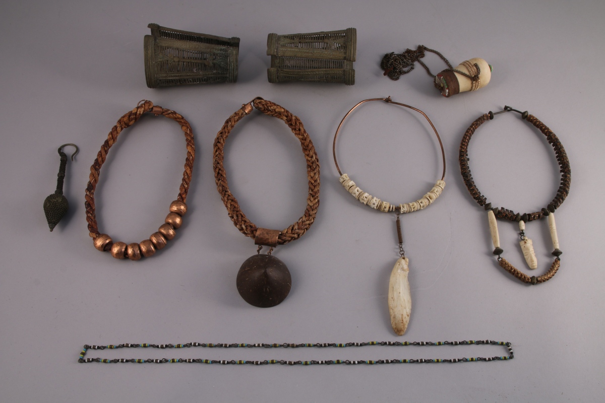 JOINT : ENSEMBLE de BIJOUX comprenant manchettes, colliers, éléments de parure, bague.