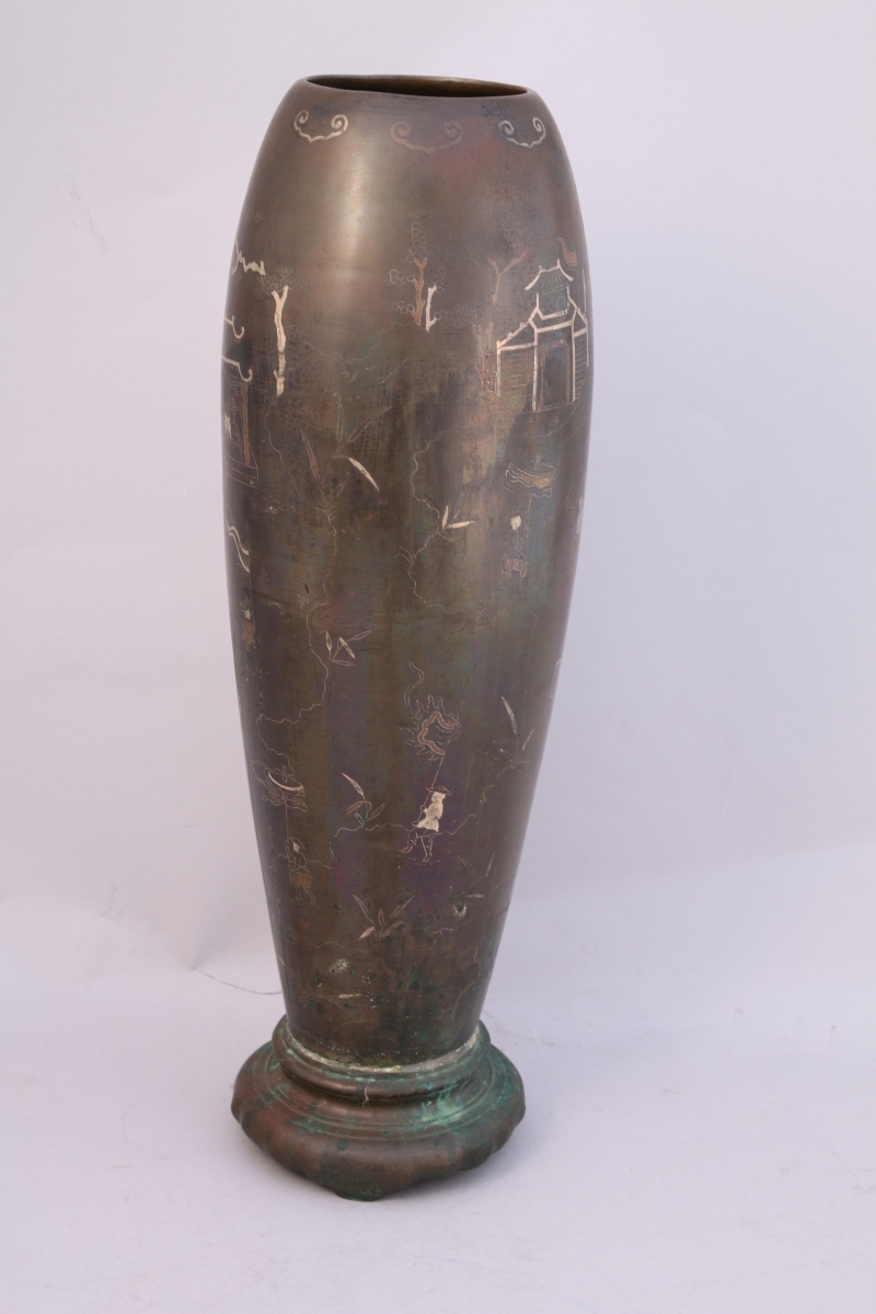 INDOCHINE. VASE ovoïde en bronze à décor incrusté de métal.