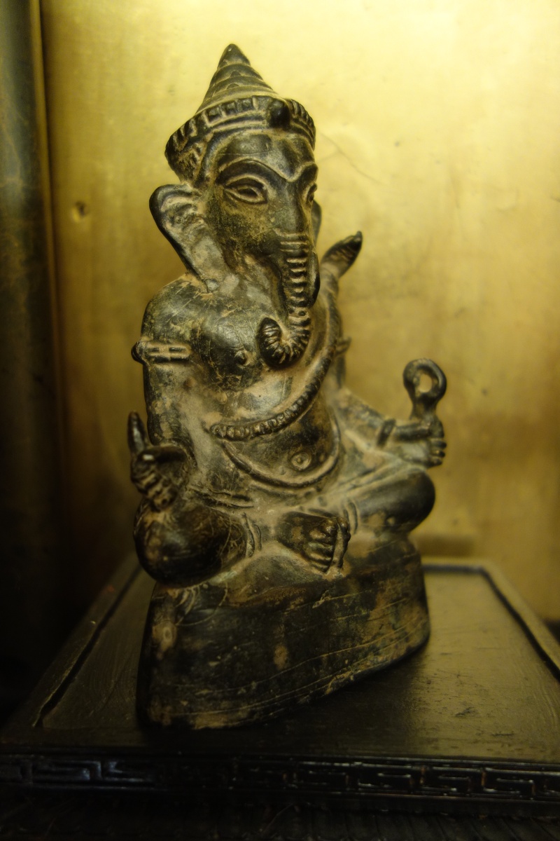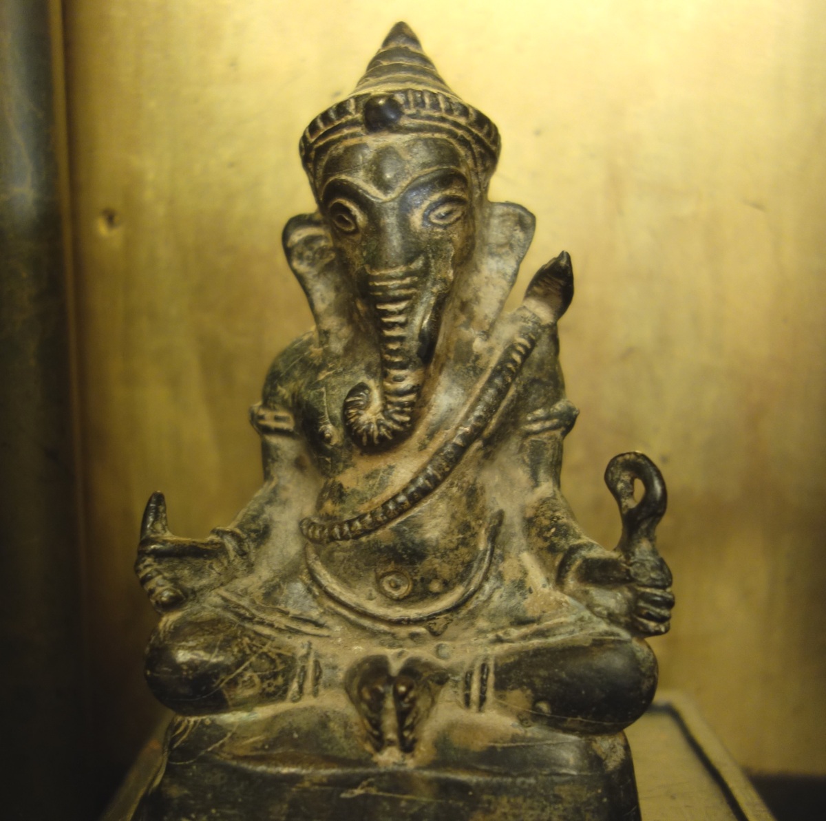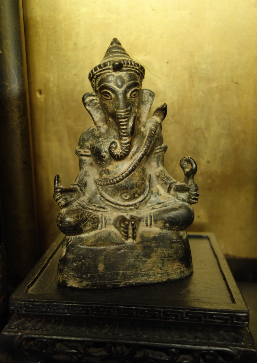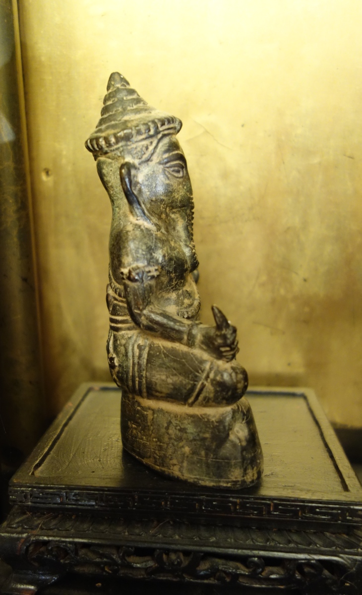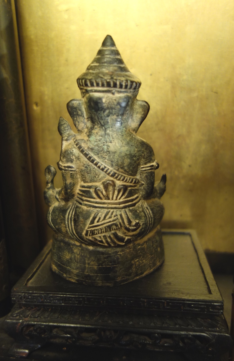 CAMBODGE - Style Khmer. Statuette en bronze à patine brune représentant GANESH assis sur un socle.