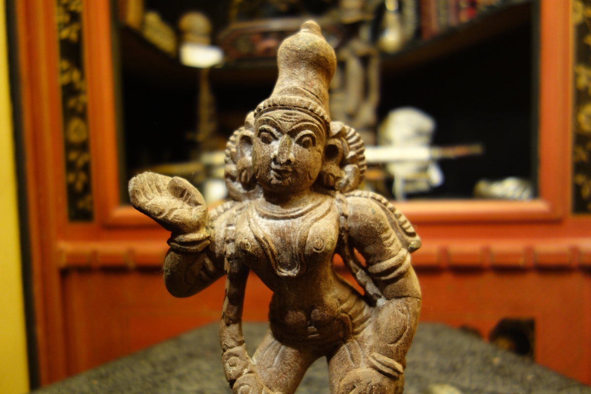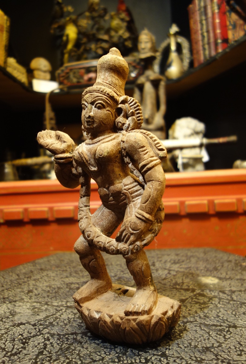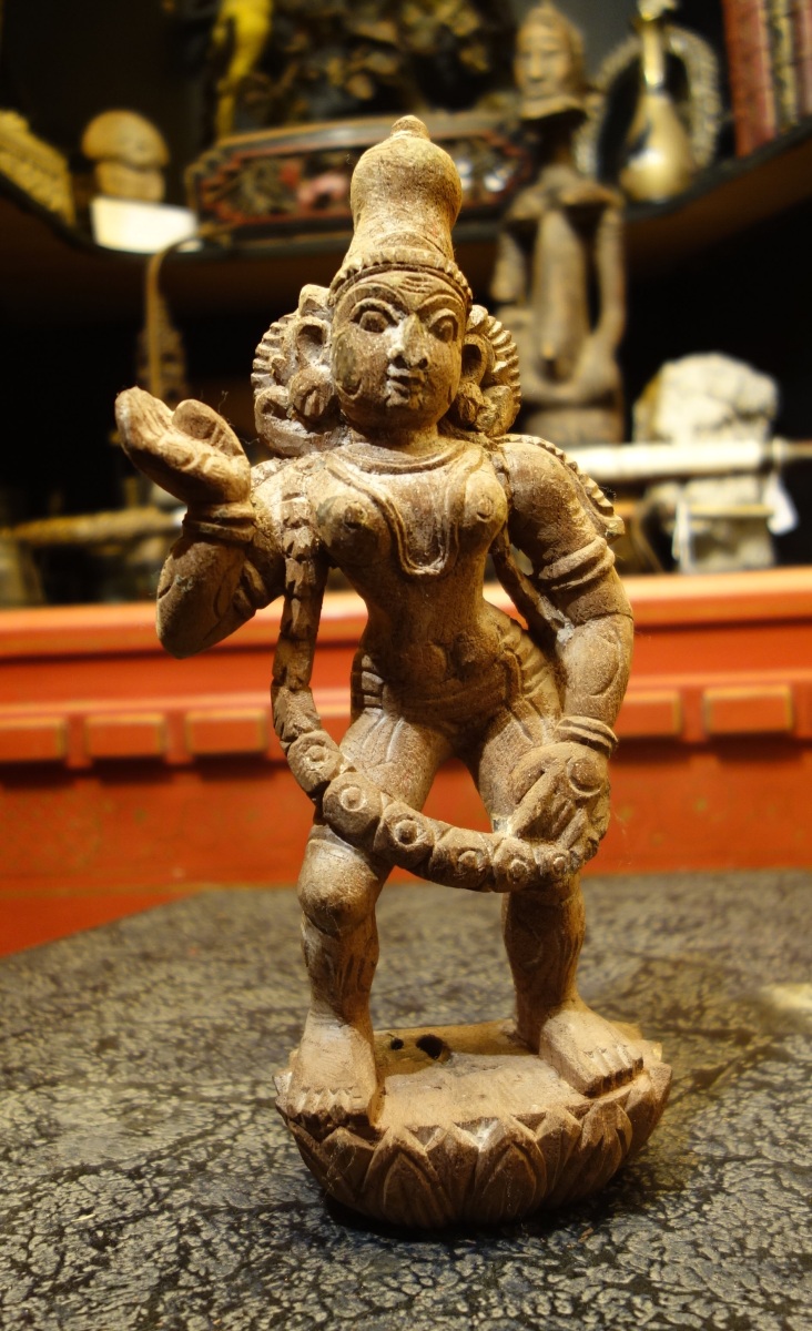 INDE. PARVATI et son serpent en bois sculpté.