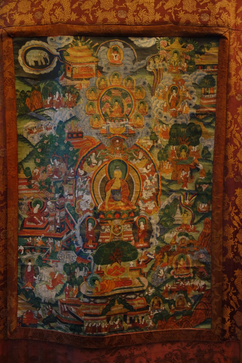 TIBET - Début du XXe. TANGKA, scènes de la vie de Bouddha.