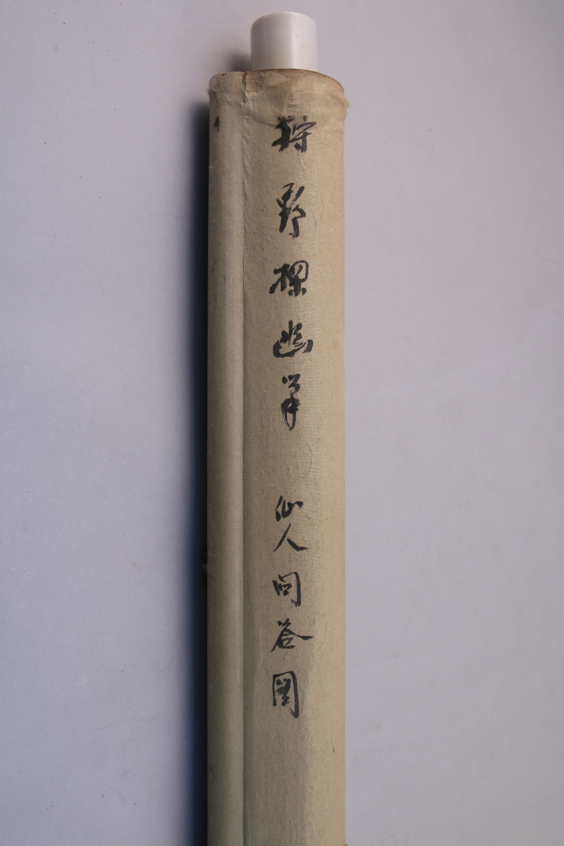 Haut. 107, Larg. 51 cm. (en l'état). Montée sur rouleau, portant des caractères. Haut. totale 188, Larg. 66 cm.