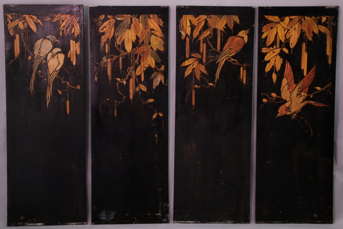 CHINE - XIXe ? QUATRE PANNEAUX assemblés en cèdre laqué à décor d'oiseaux (martin-pêcheur) et de feuillages.