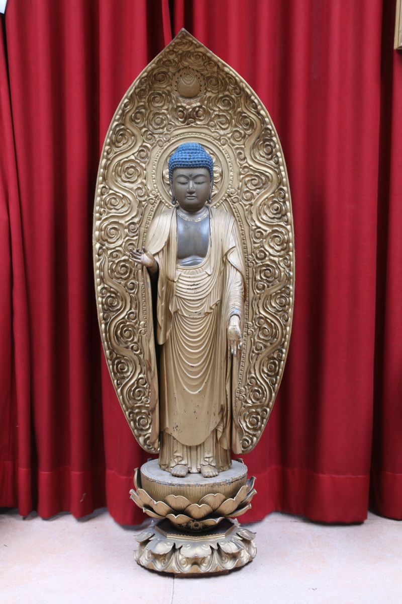 Bouddha : Haut. 99 cm. Haut. totale 160 cm. (redoré à la peinture)