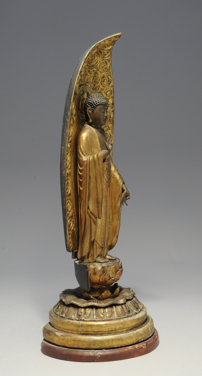 JAPON - Époque Edo (1603-1868). BOUDDHA en bois laqué or, avec sa mandorle.