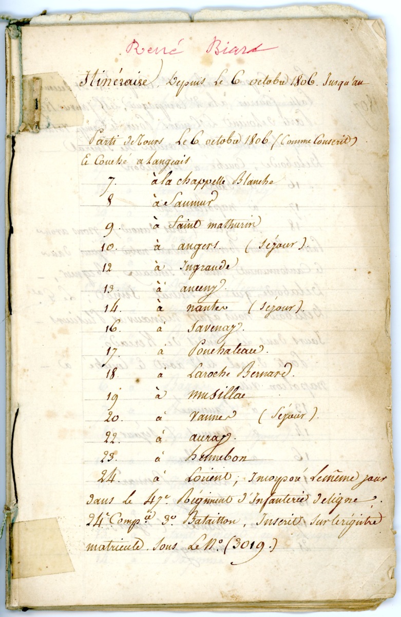 [Guerre d'Espagne - Premier Empire - Napoléon] Carnet de route d'un jeune conscrit tourangeau, 1806-1815.