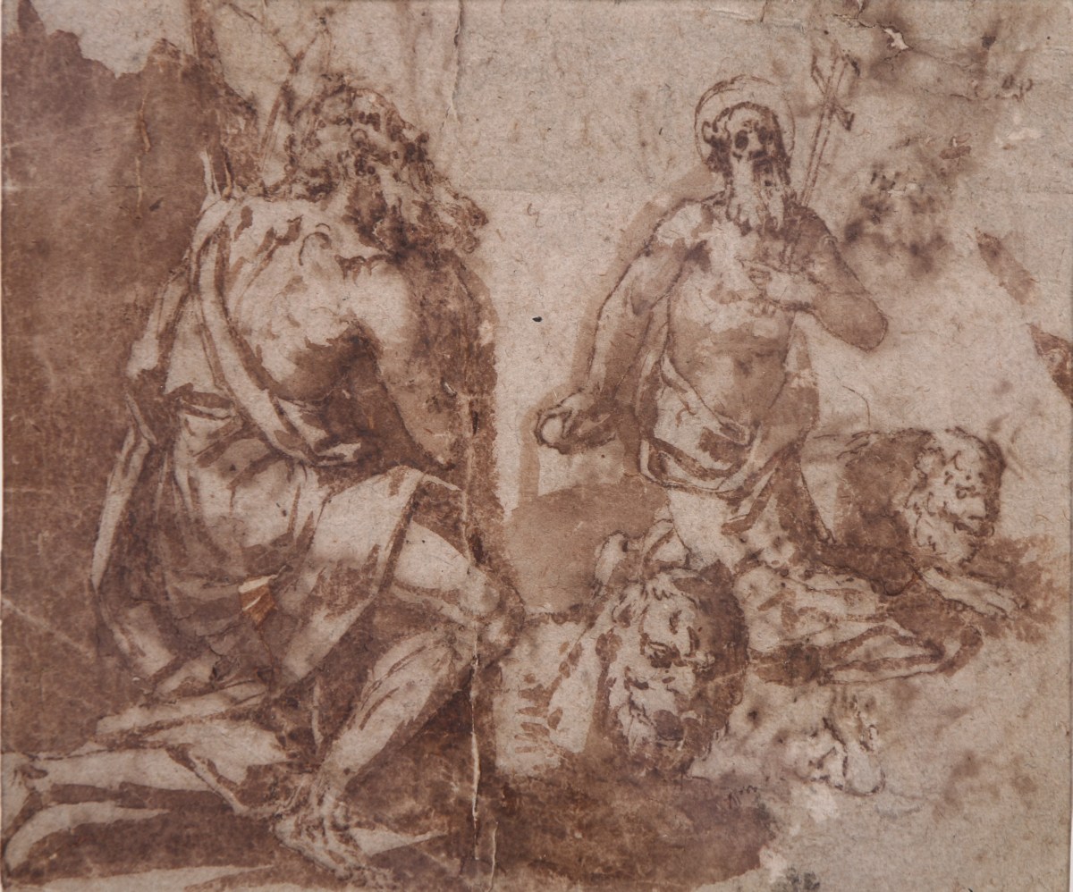 14 x 17 cm. (encre ferrogallique, manques restaurés, pliures, petites taches)