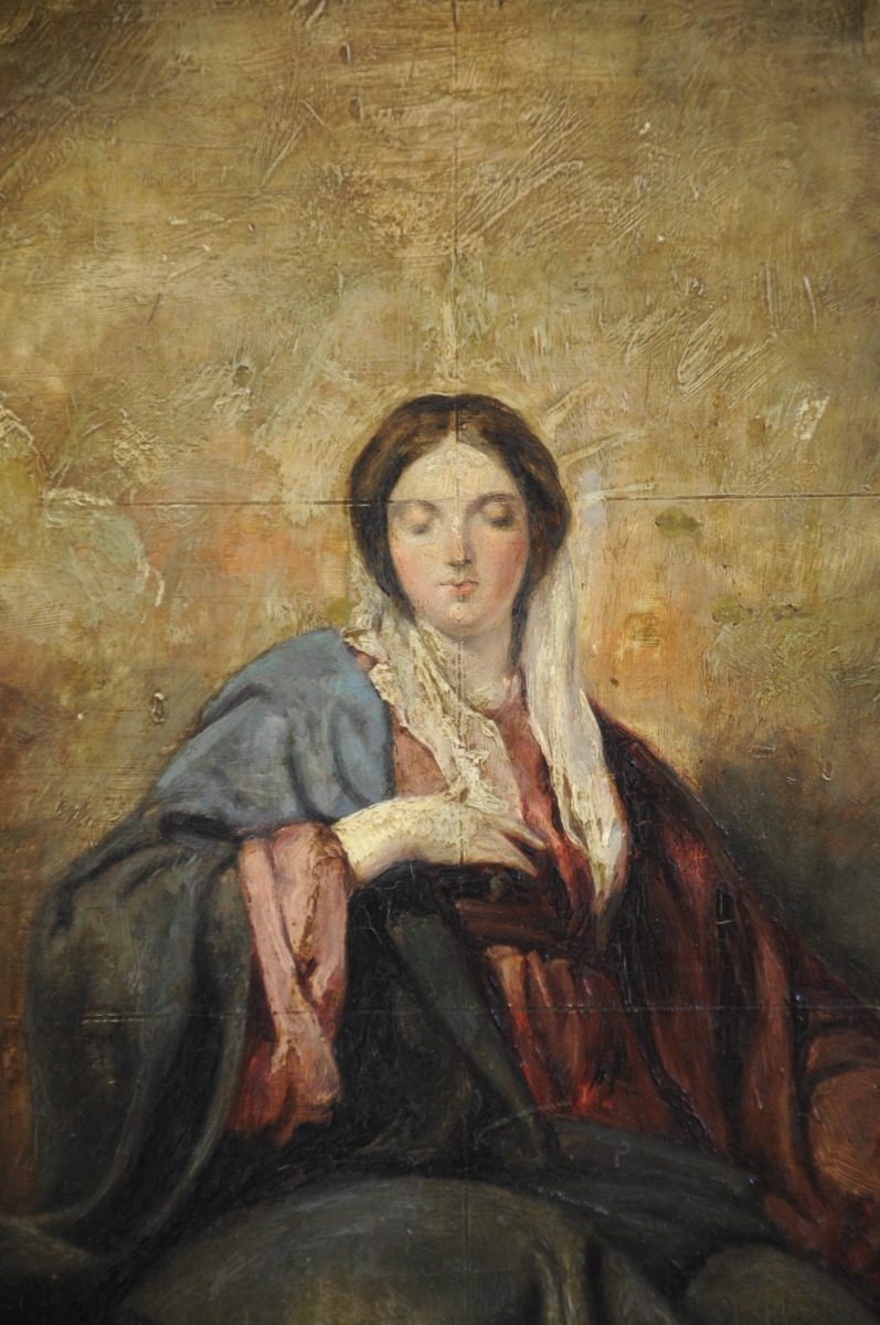 Papier marouflé sur panneau de noyer.
