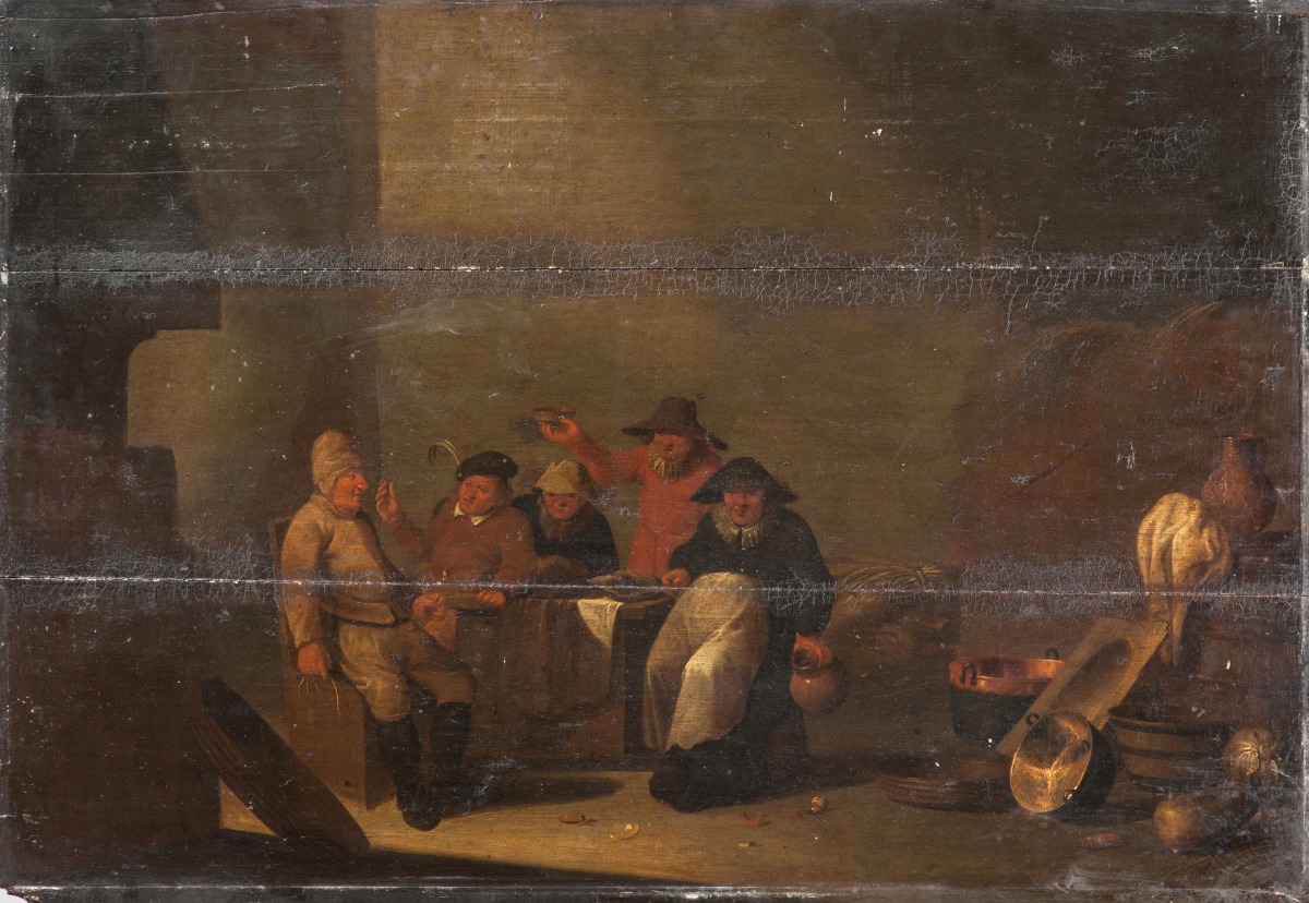 L'historien d'art Fred Meijers a pu regrouper un corpus d'une trentaine de peintures, la plupart monogrammées IS, sous le nom de Jan Spanjaert, un peintre proche de Bartholomeus Molenaer et de Pieter de Bloot (sur le site internet rkd.nl). Parmi ses autres tableaux monogrammés IS, citons l'Intérieur de taverne au musée Fabre de Montpellier (inv. 895-7-51) ou celui autrefois au Phoenix art Museum. Les natures mortes au premier plan, avec les pichets en terre ou les bassines en cuivre et en bois, sont caractéristiques de sa manière.
