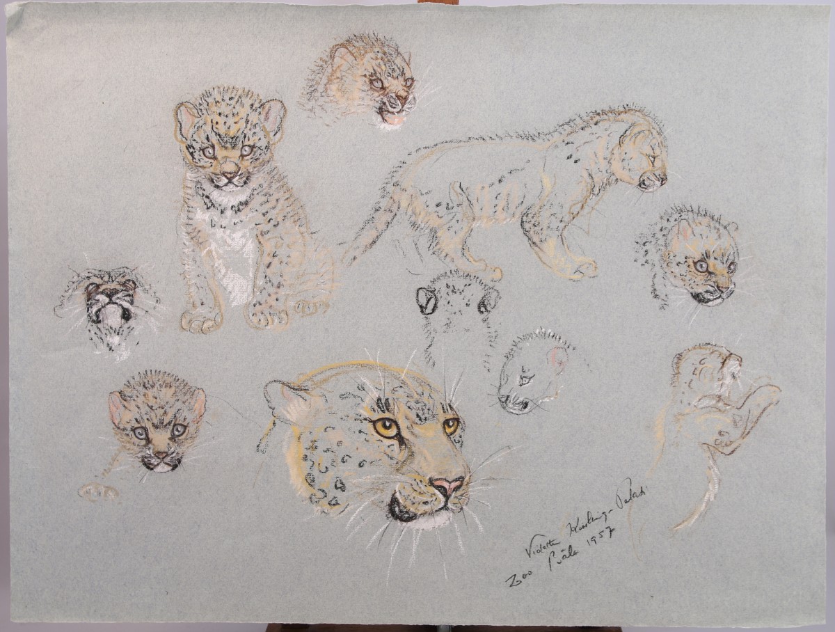 Pastel signé, daté 1957 et situé "Zoo Bâle" en bas à droite.