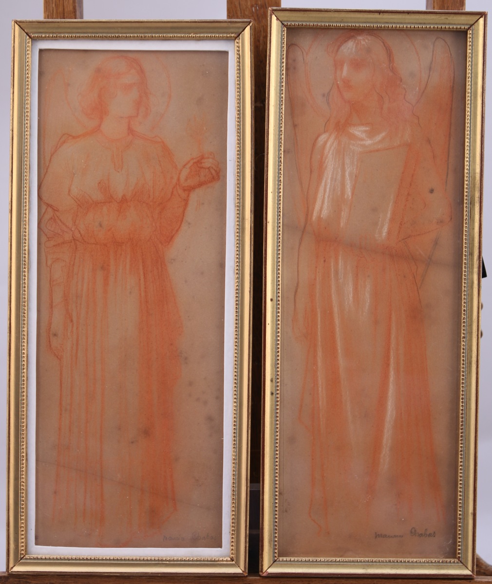 deux dessins à la sanguine et rehauts de blanc, sur papier de couleurs. Signées en bas droite.